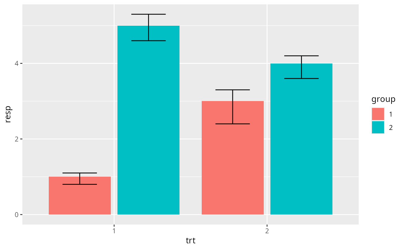 p <- ggplot(df, aes(trt, resp, fill = group))