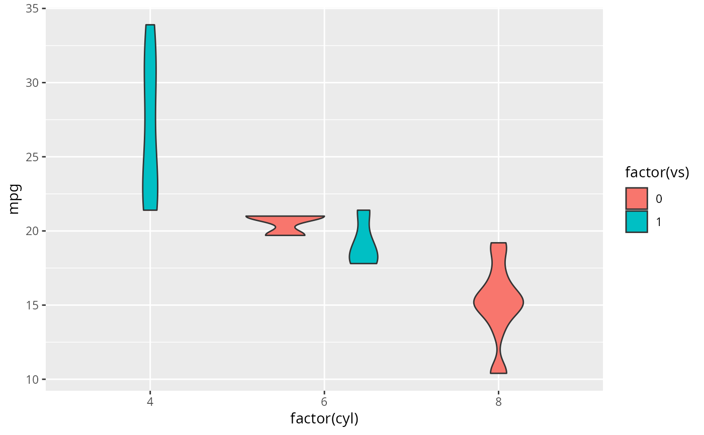 geom_violin()andstat_ydensity(). For more information about overriding these connections, see how the stat and geom arguments work.- bw