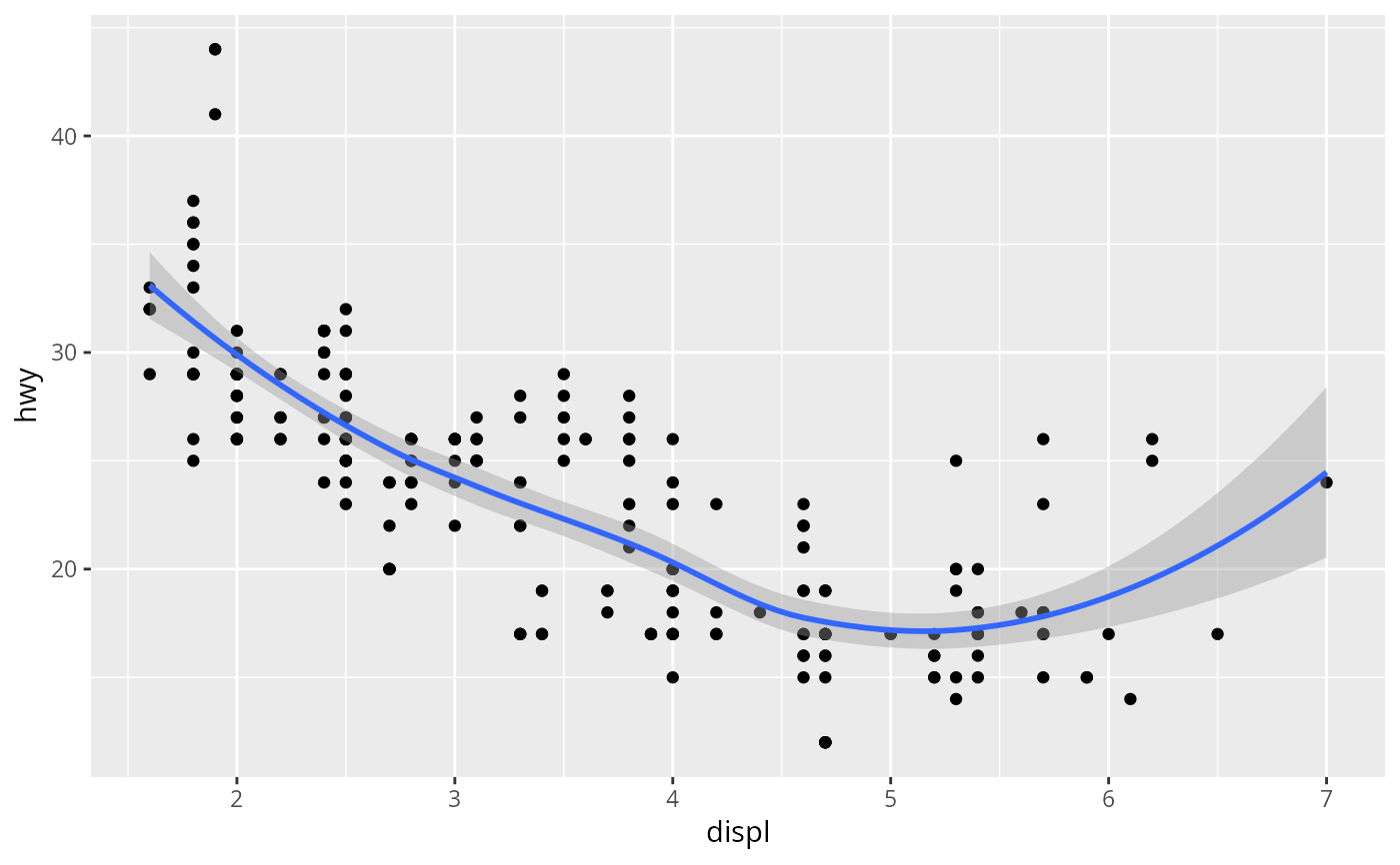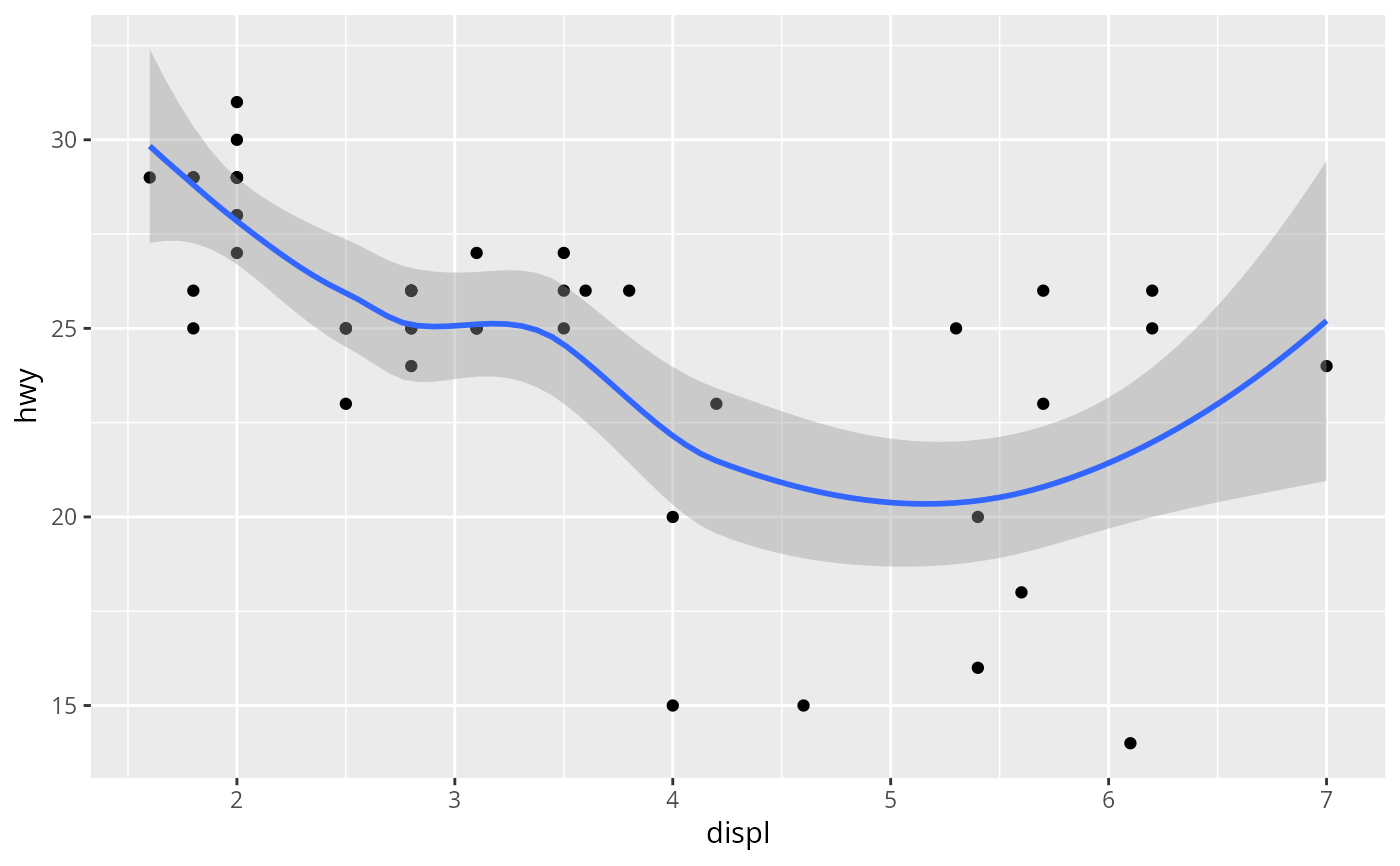 base + list(subset(mpg, fl == "p"), geom_smooth())