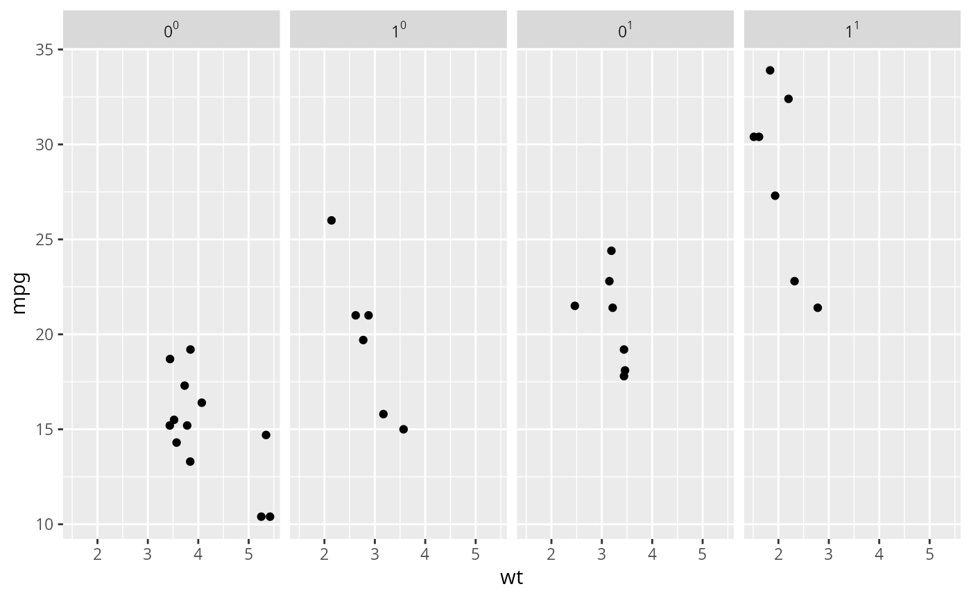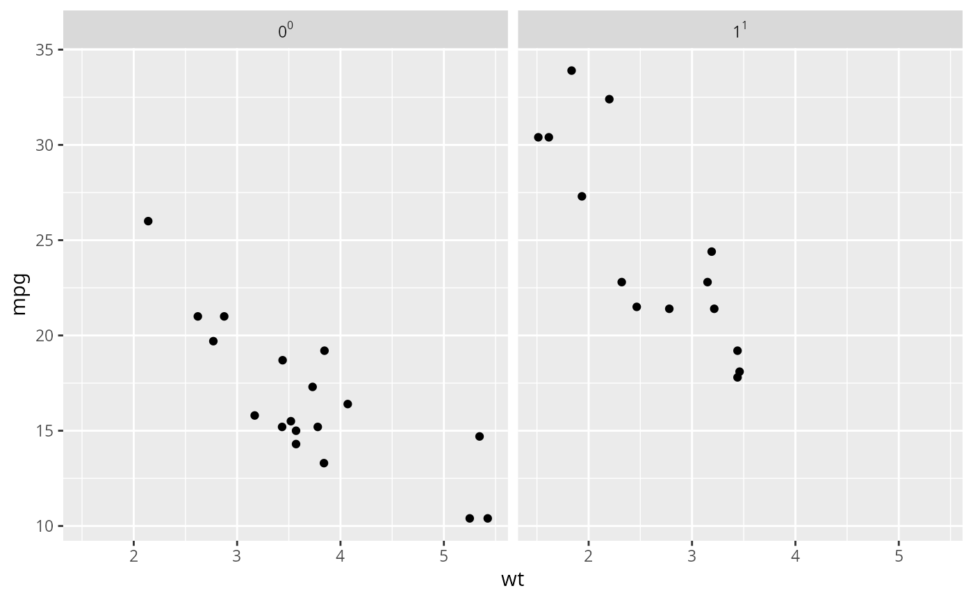 p + facet_grid(. ~ vs, labeller = label_bquote(cols = .(vs) ^ .(vs)))