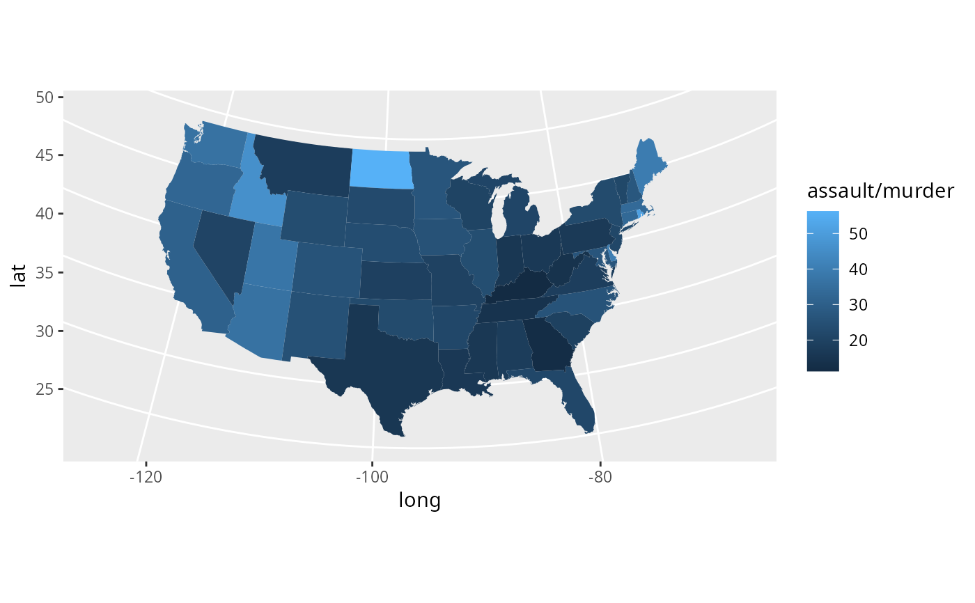 choro <- merge(states, arrests, sort = FALSE, by = "region")
