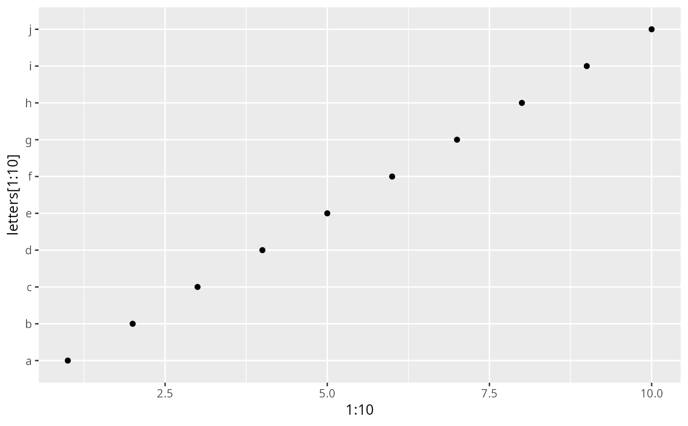 qplot(1:10, letters[1:10])