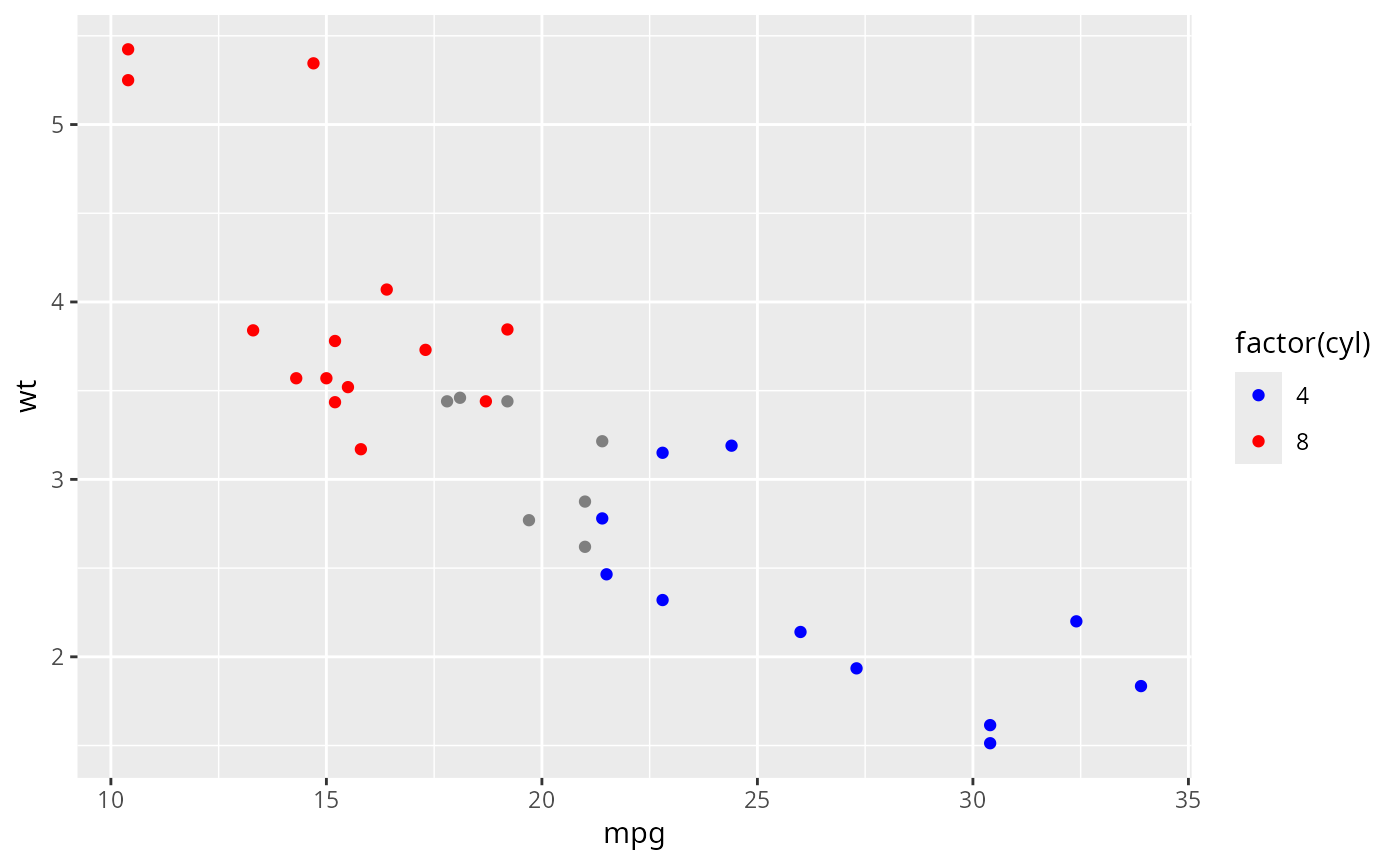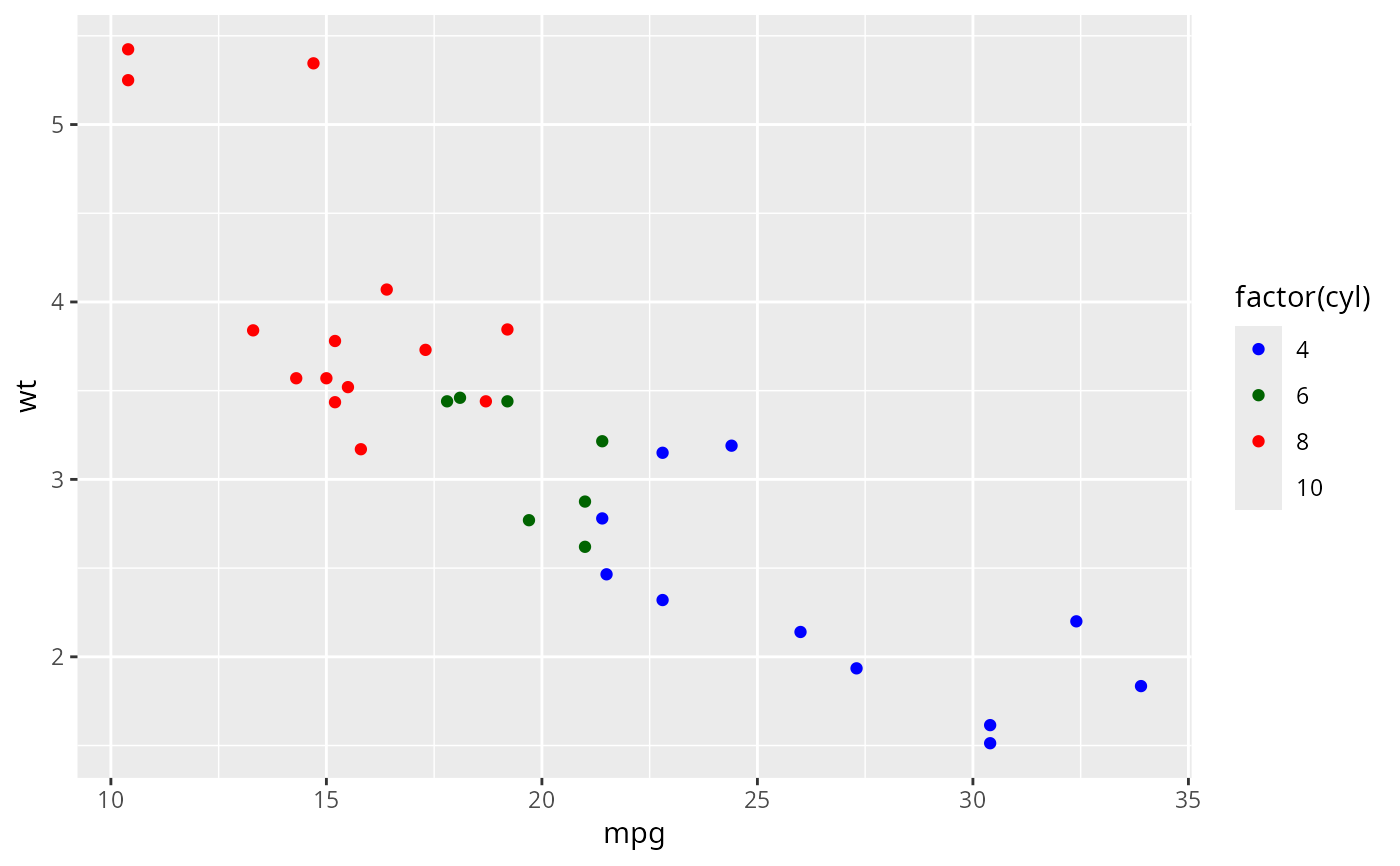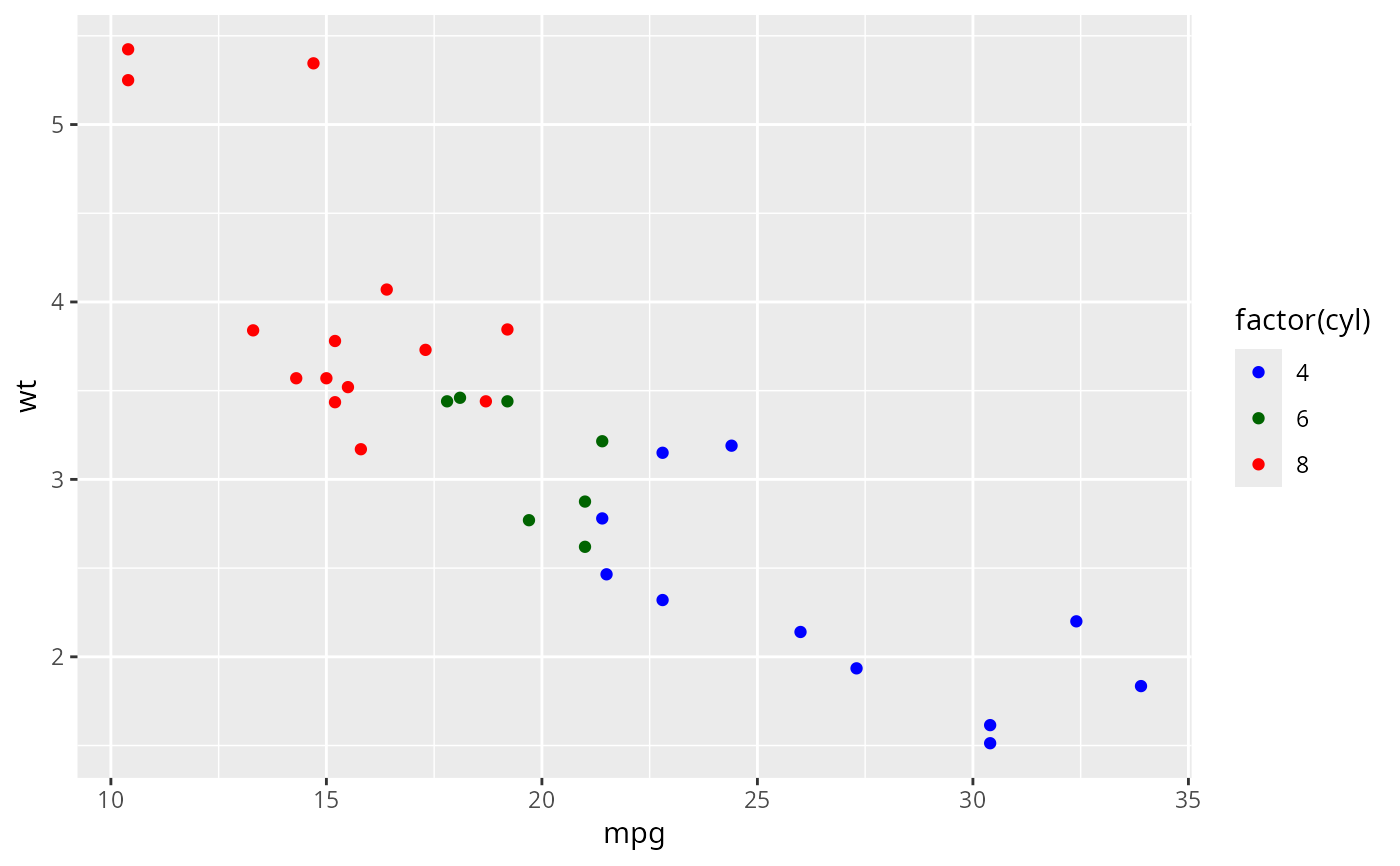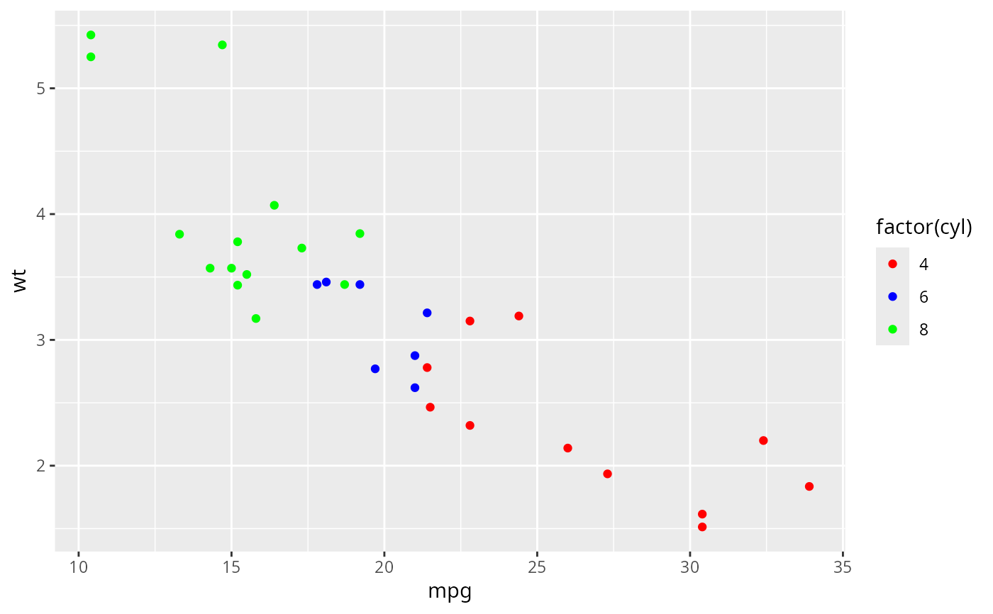 geom_point(aes(colour = factor(cyl)))