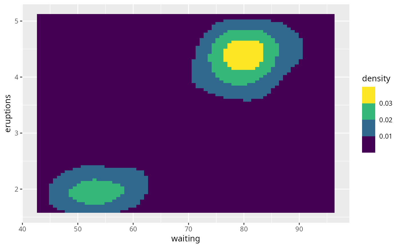 geom_tile(aes(waiting, eruptions, fill = density)))
