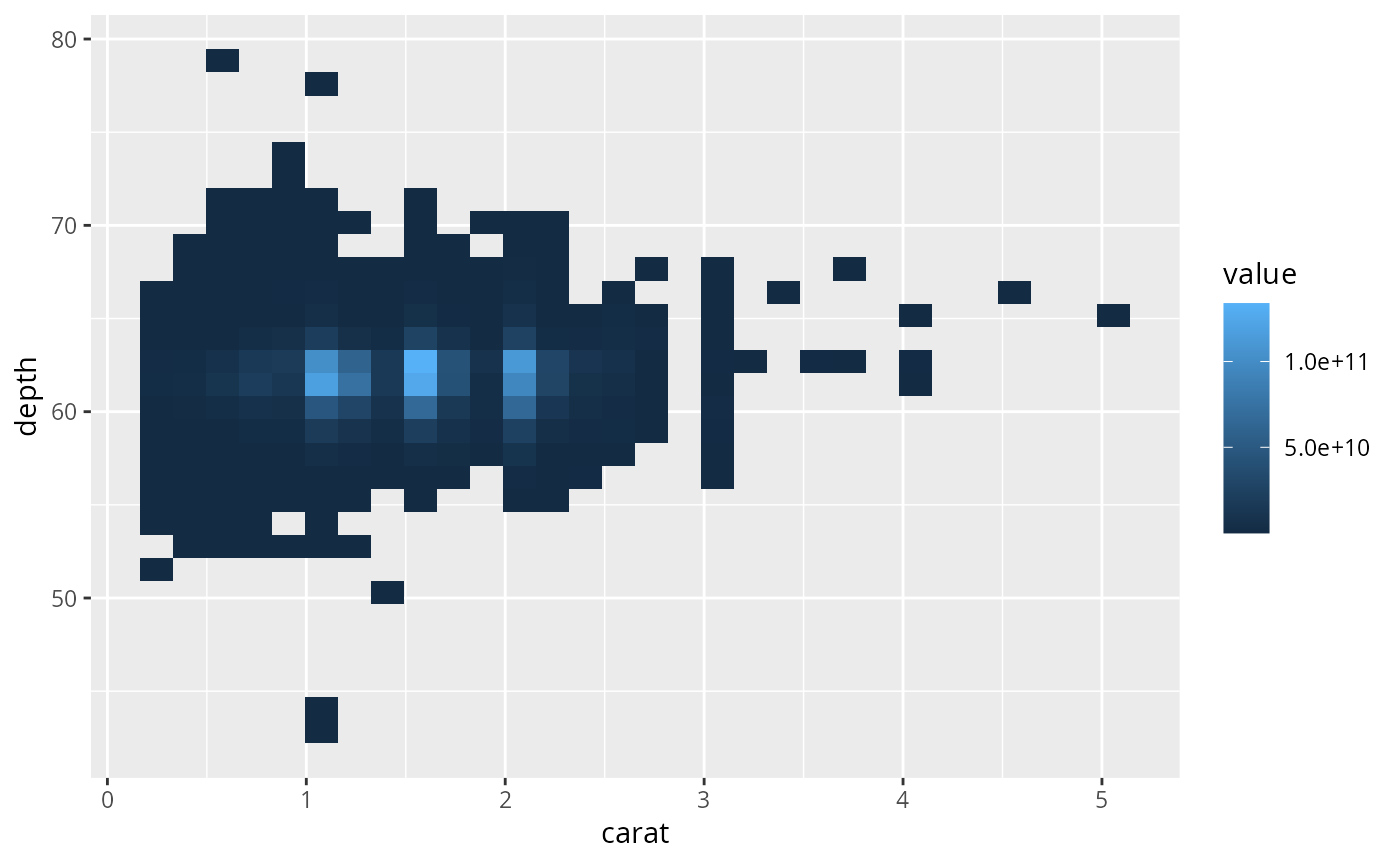 d <- ggplot(diamonds, aes(carat, depth, z = price))