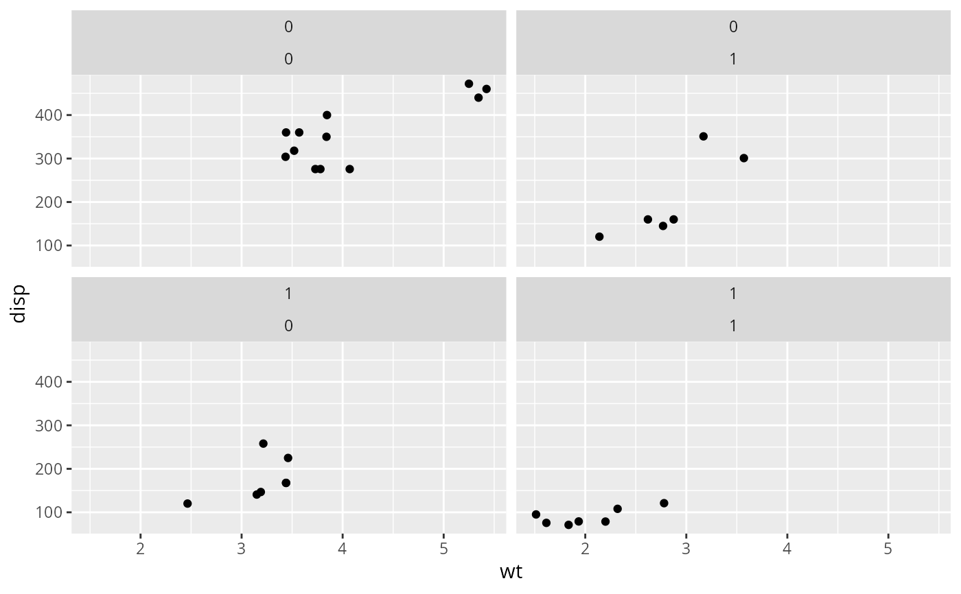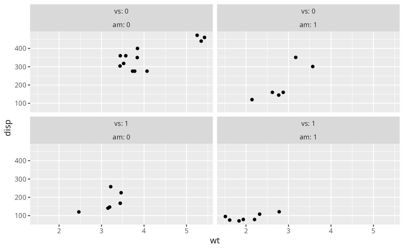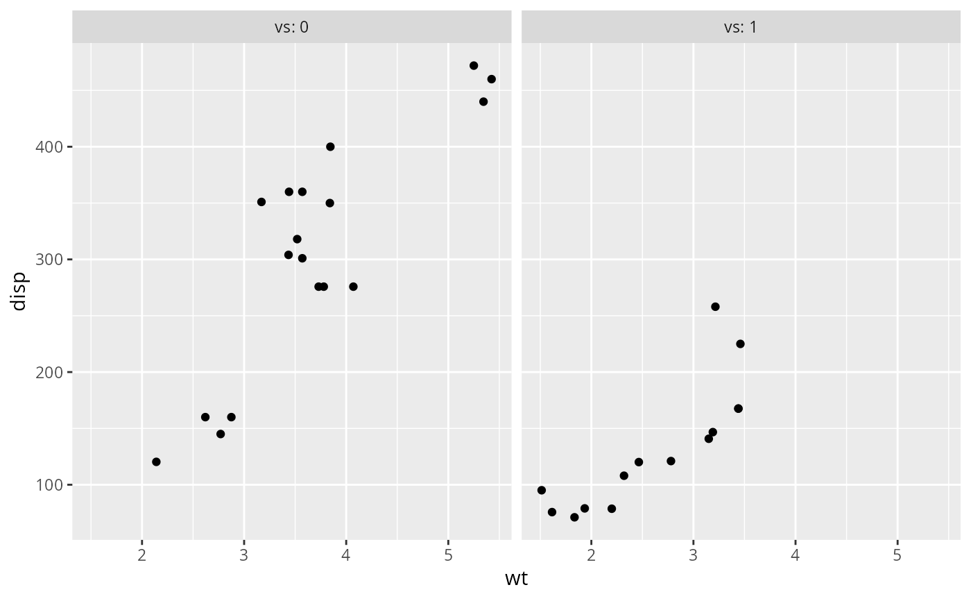 p <- ggplot(mtcars, aes(wt, disp)) + geom_point()