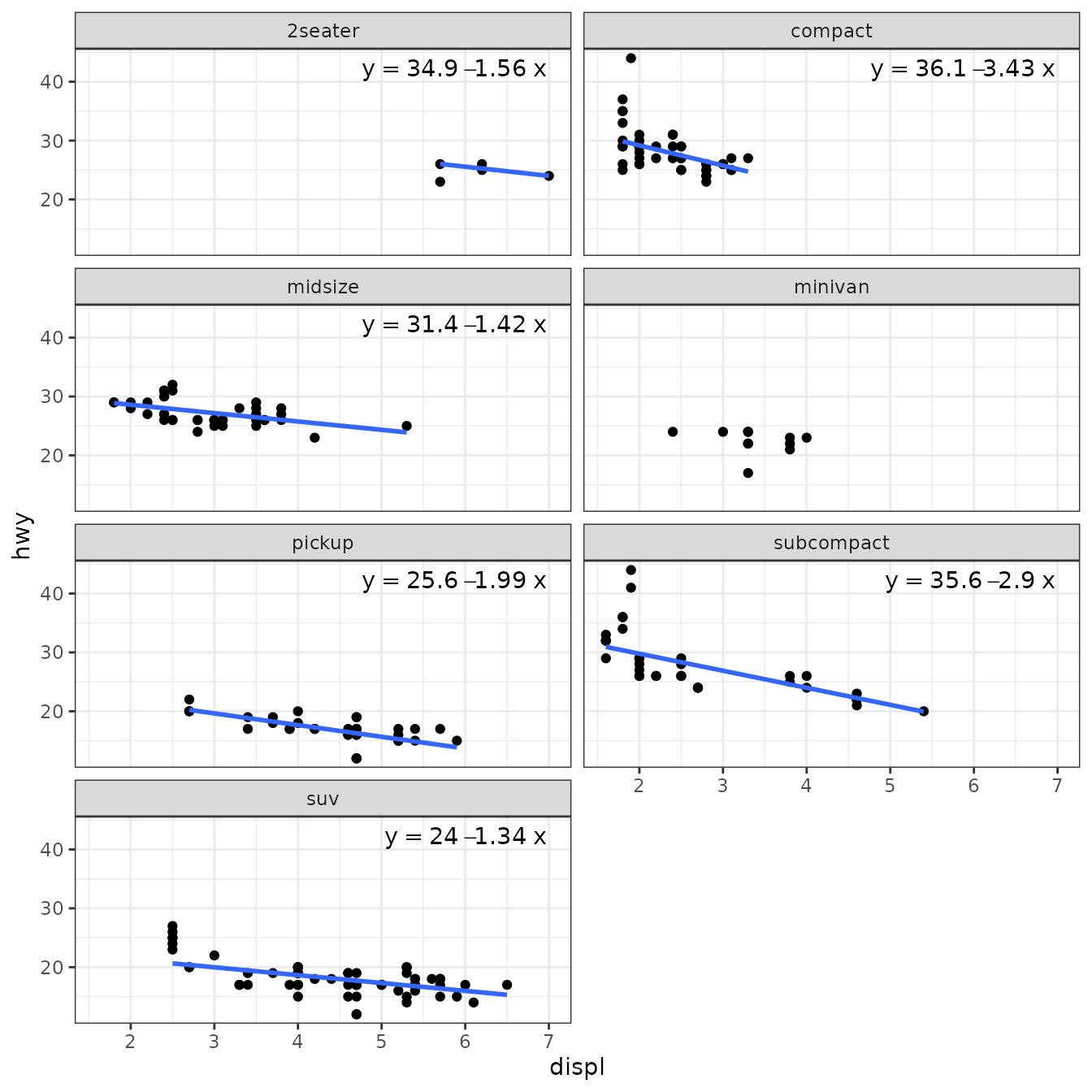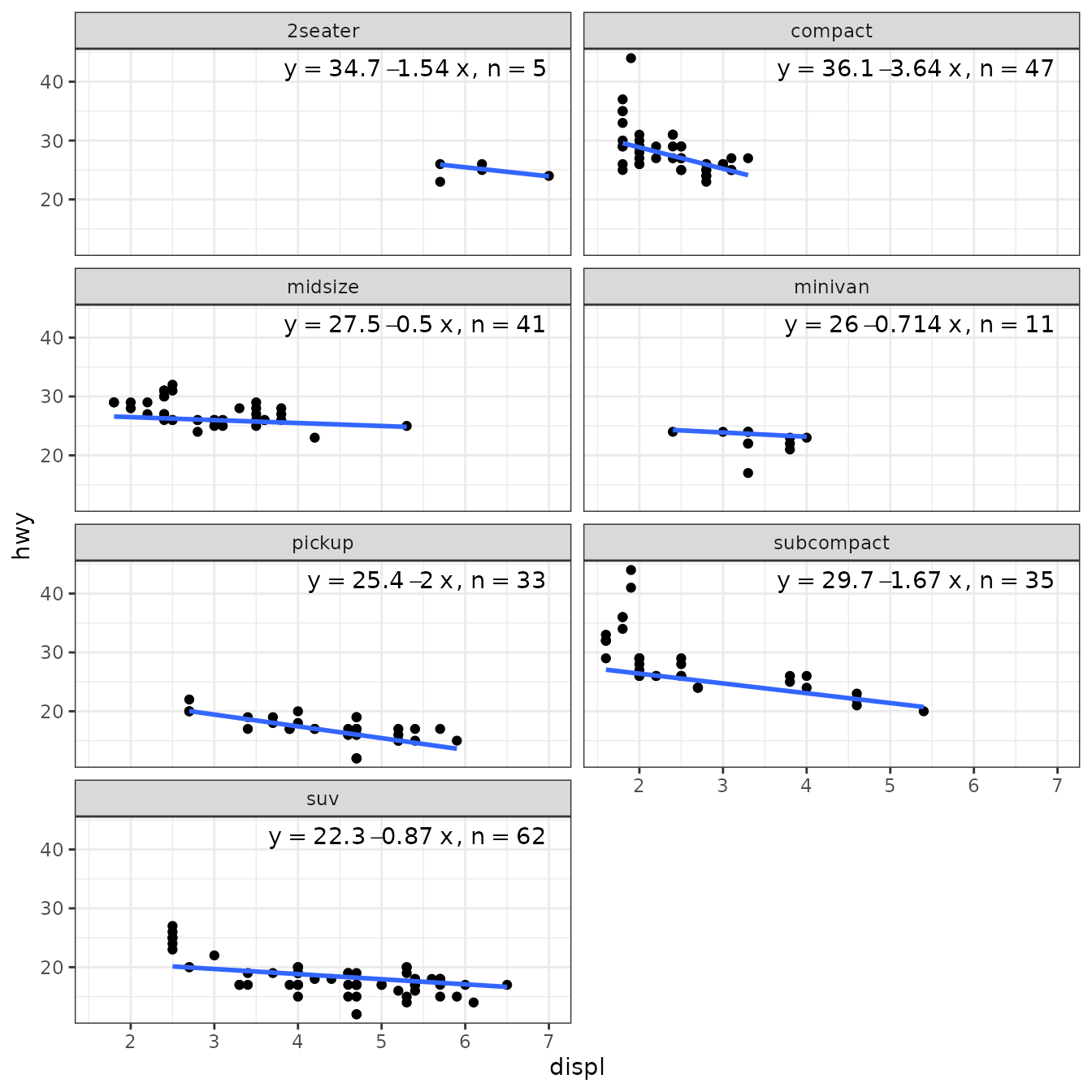 facet_wrap(~class, ncol = 2)