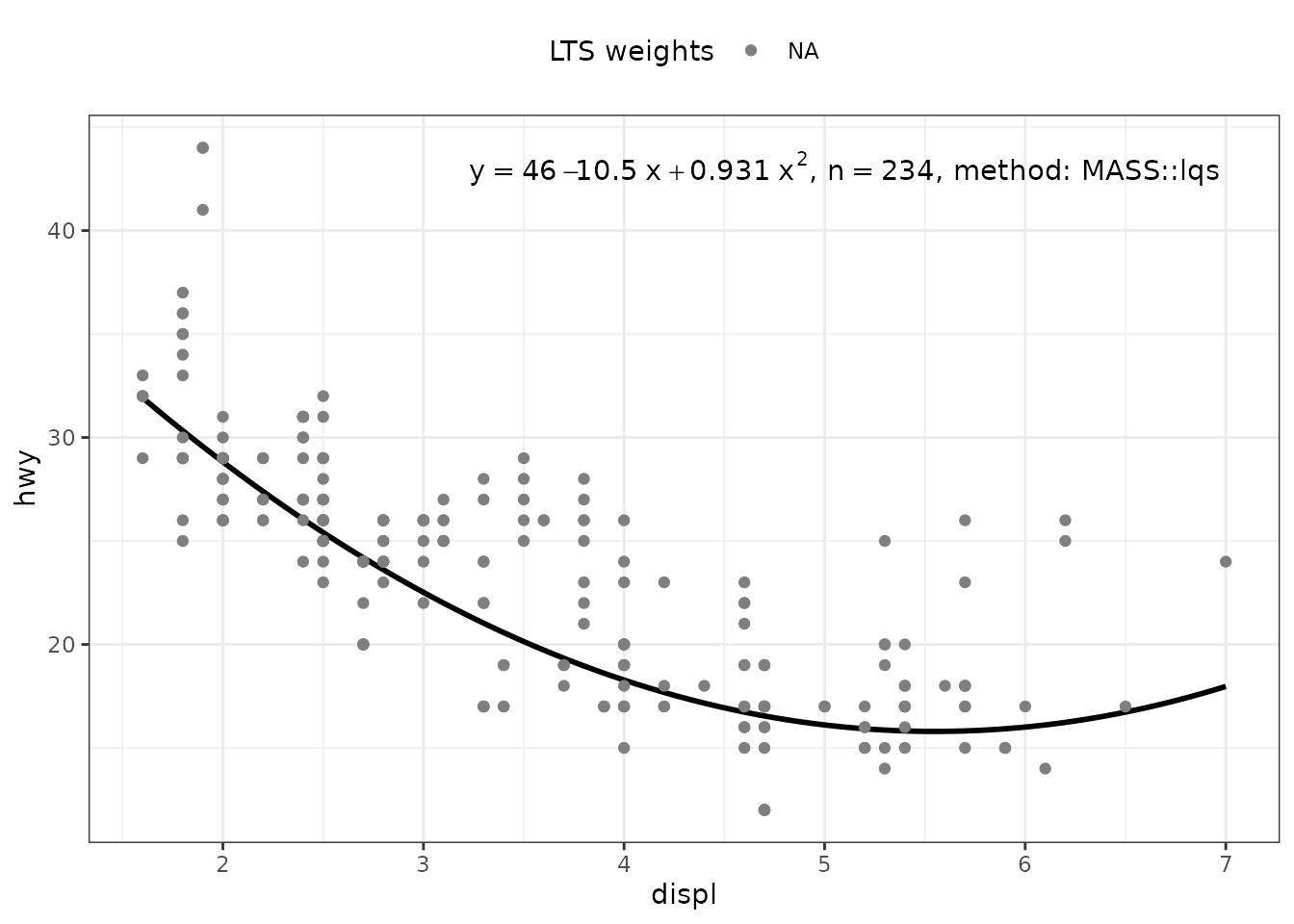 stat_poly_eq(method = MASS::lqs, mapping = use_label("eq", "n"),
