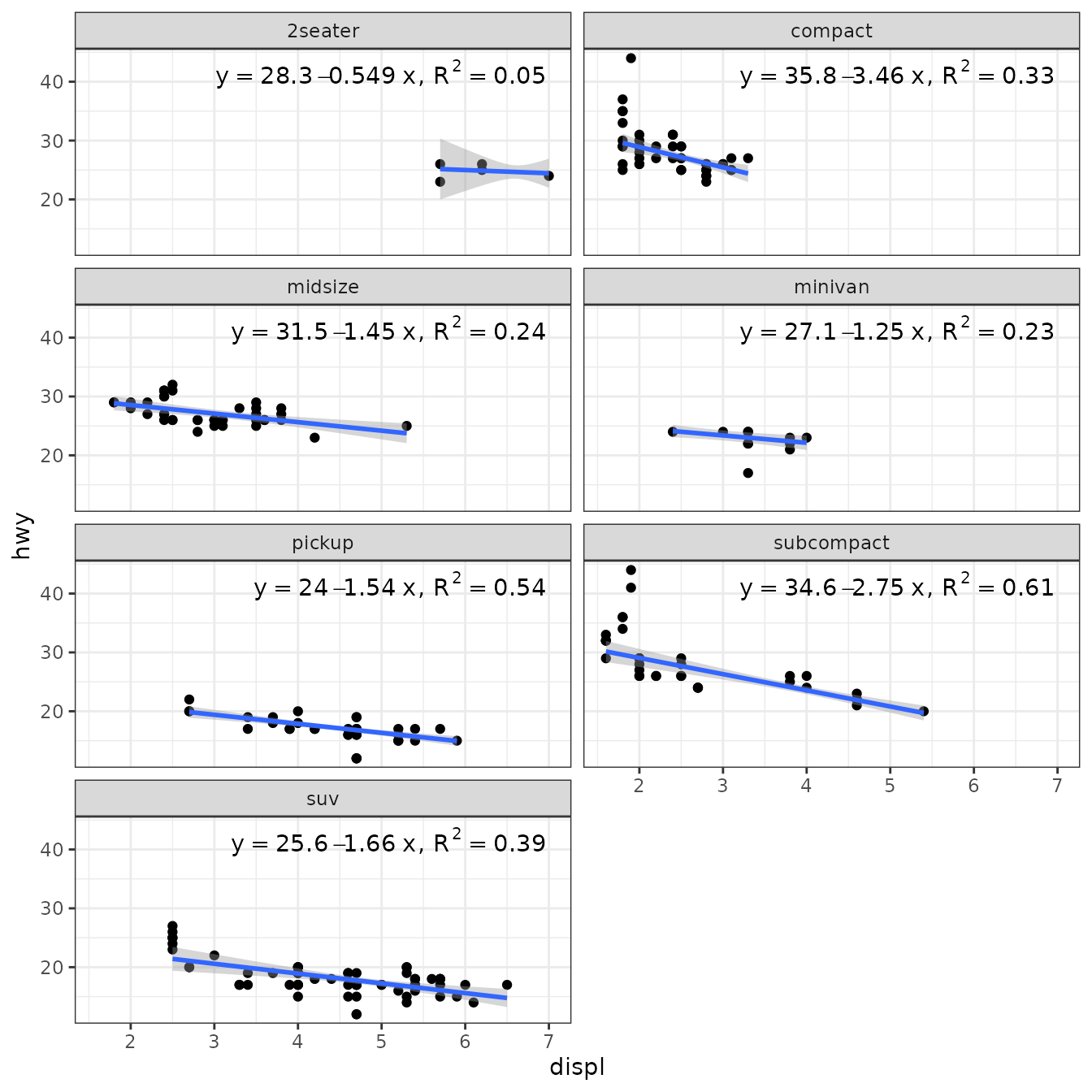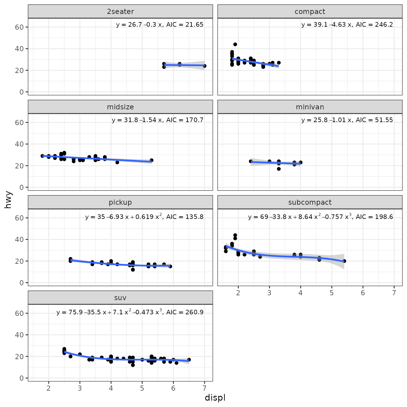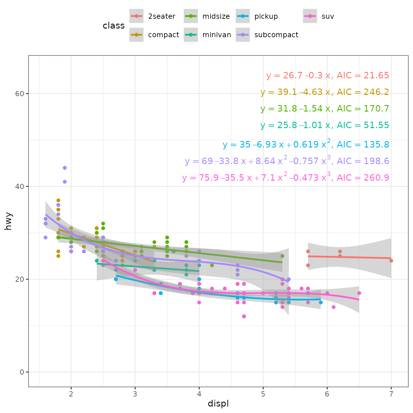 stat_poly_eq(aes(y = hwy,