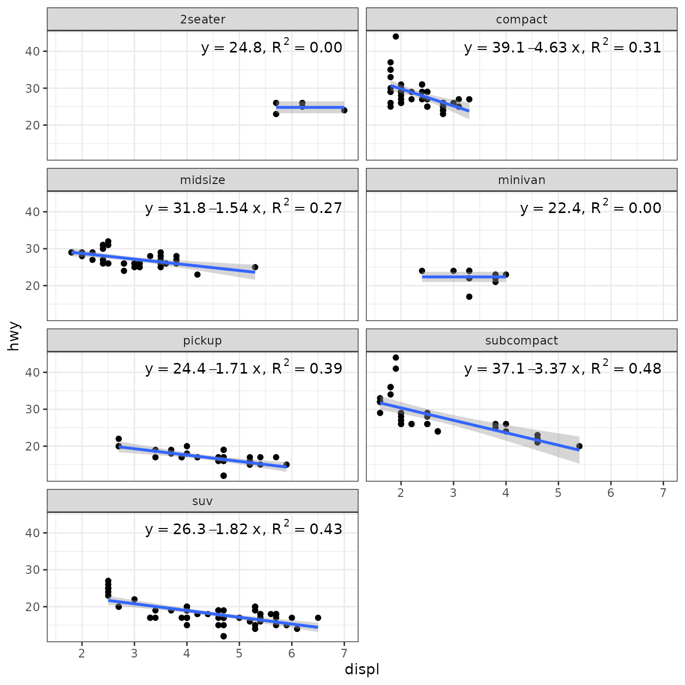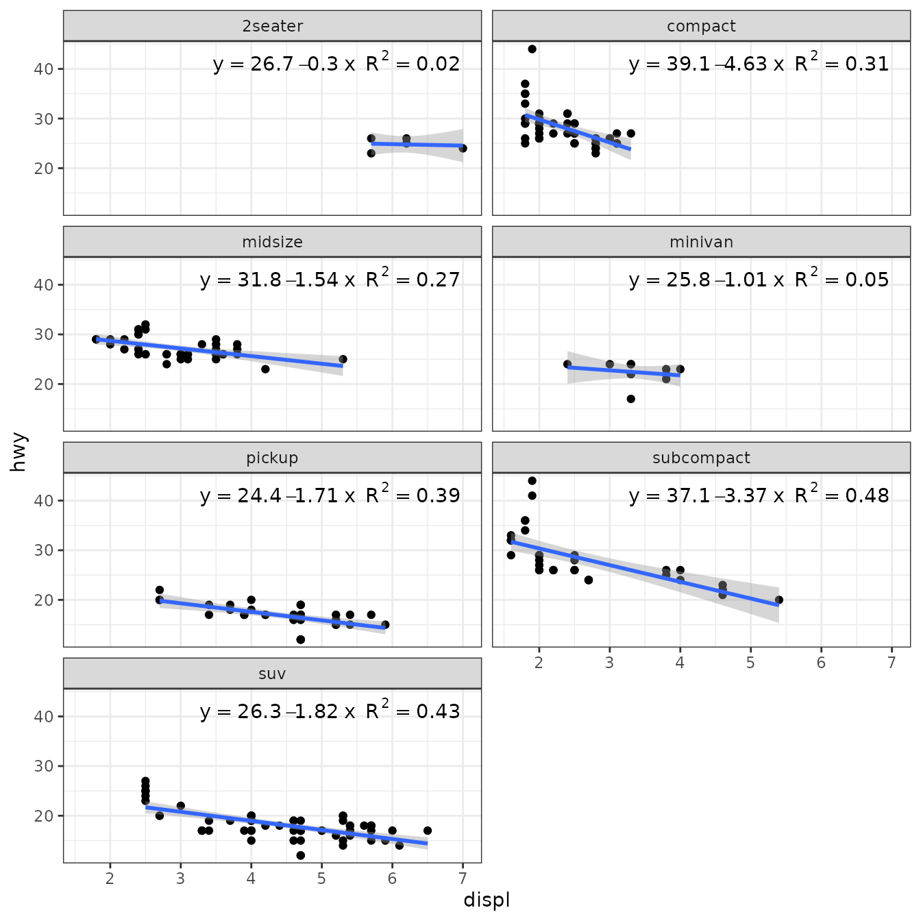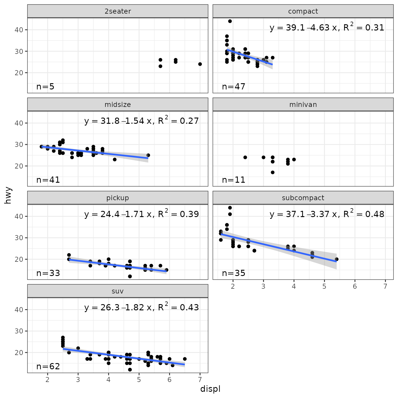 stat_poly_eq(aes(y = hwy,