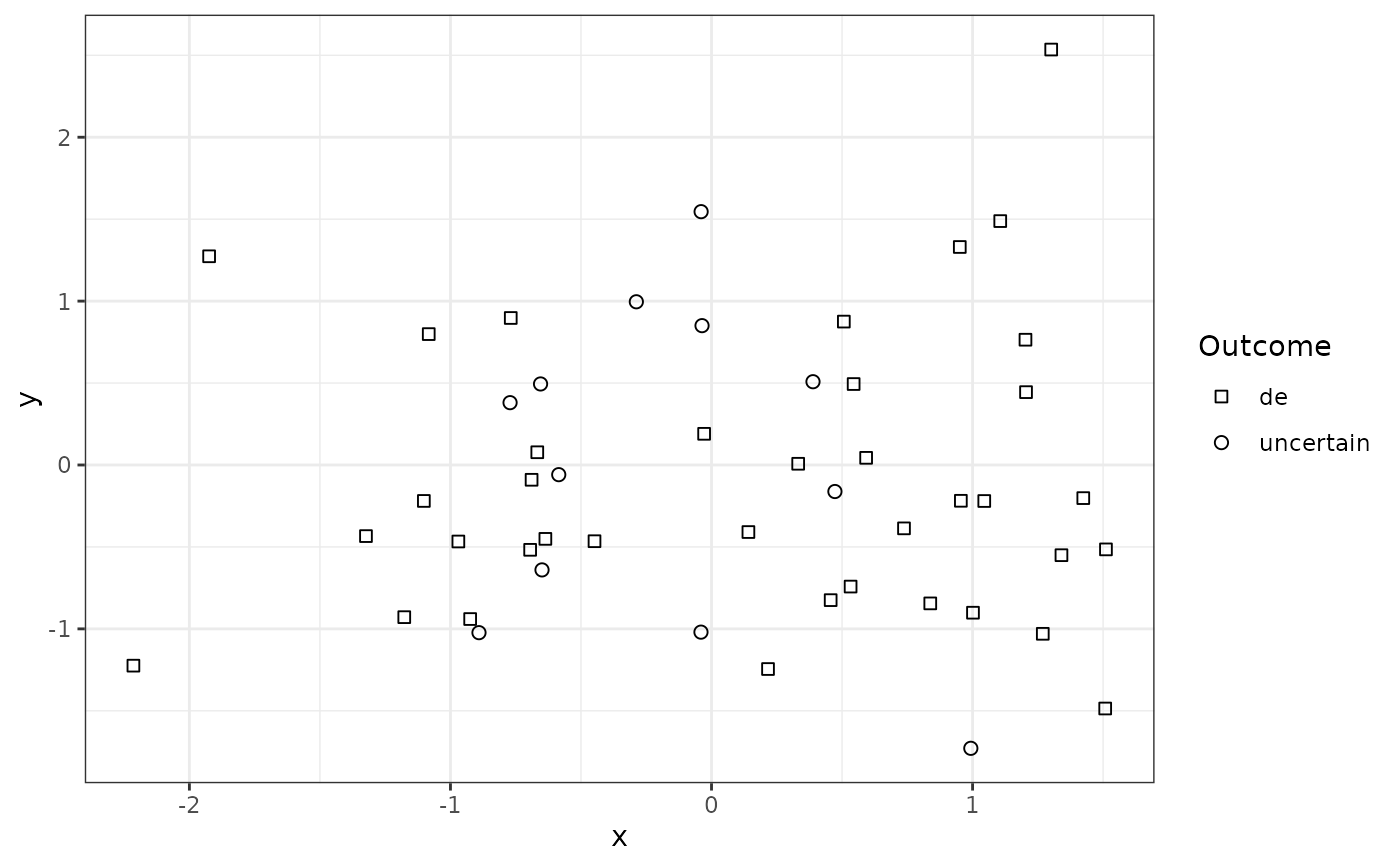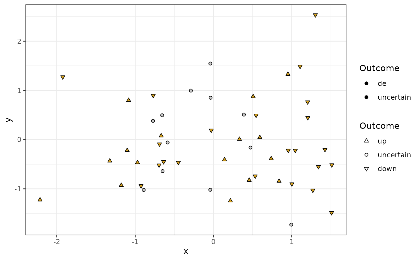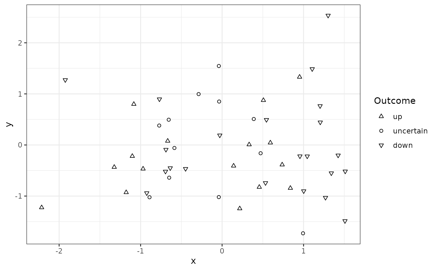 ggplot(my.df, aes(x, y, shape = outcome3)) +