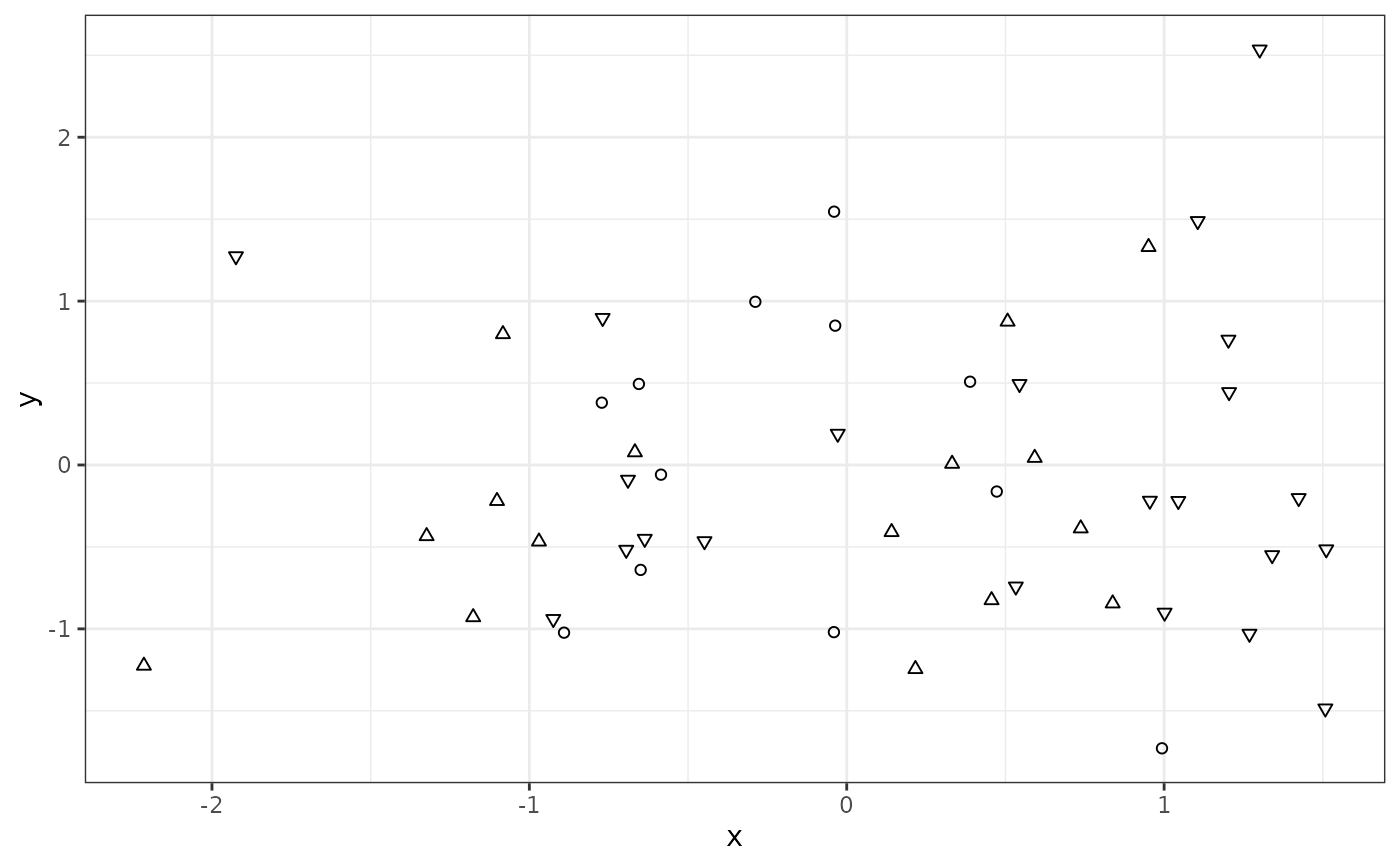 ggplot(my.df, aes(x, y, shape = outcome2)) +