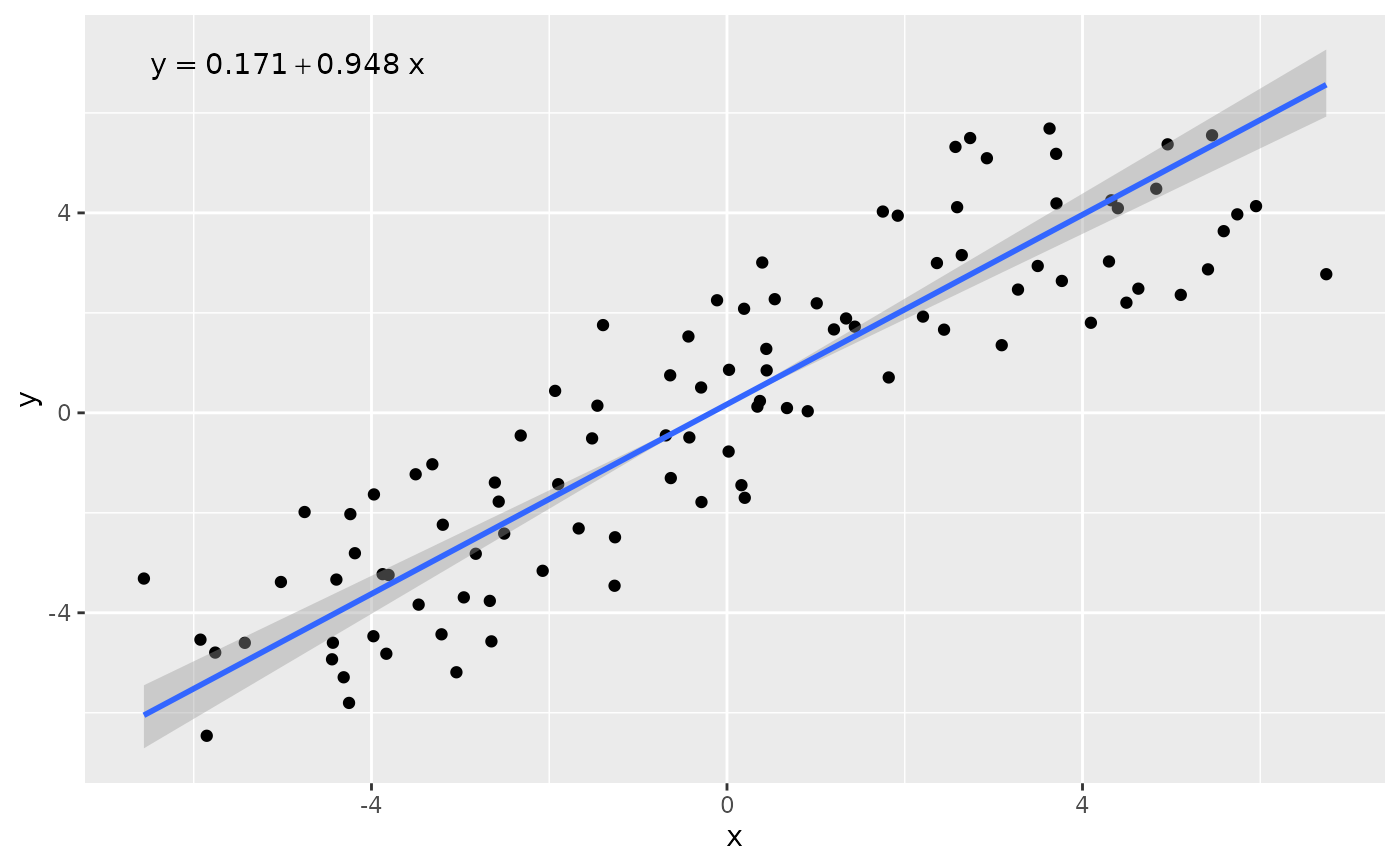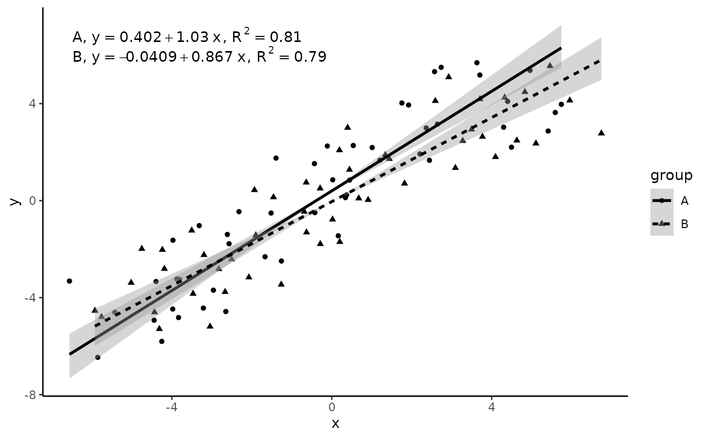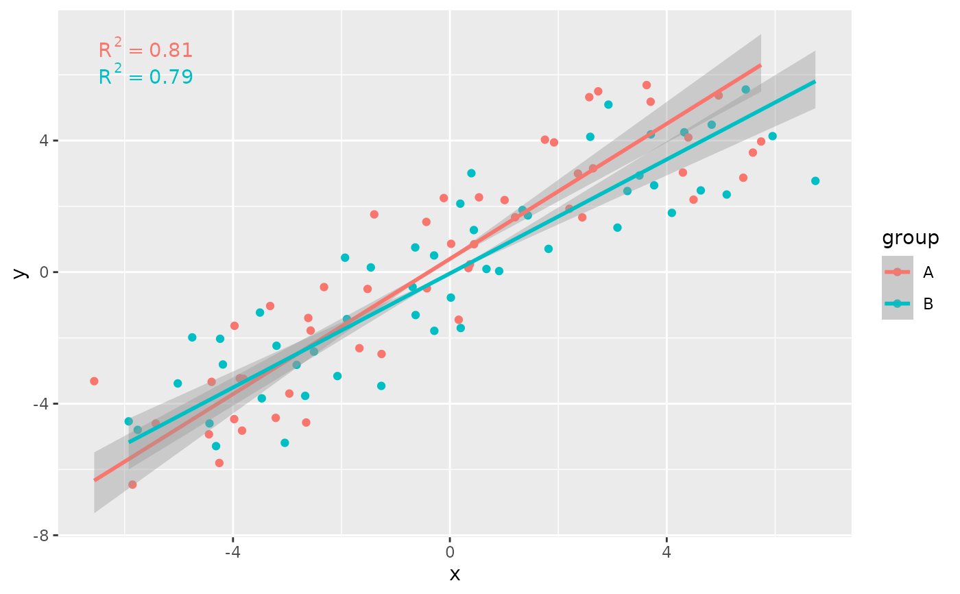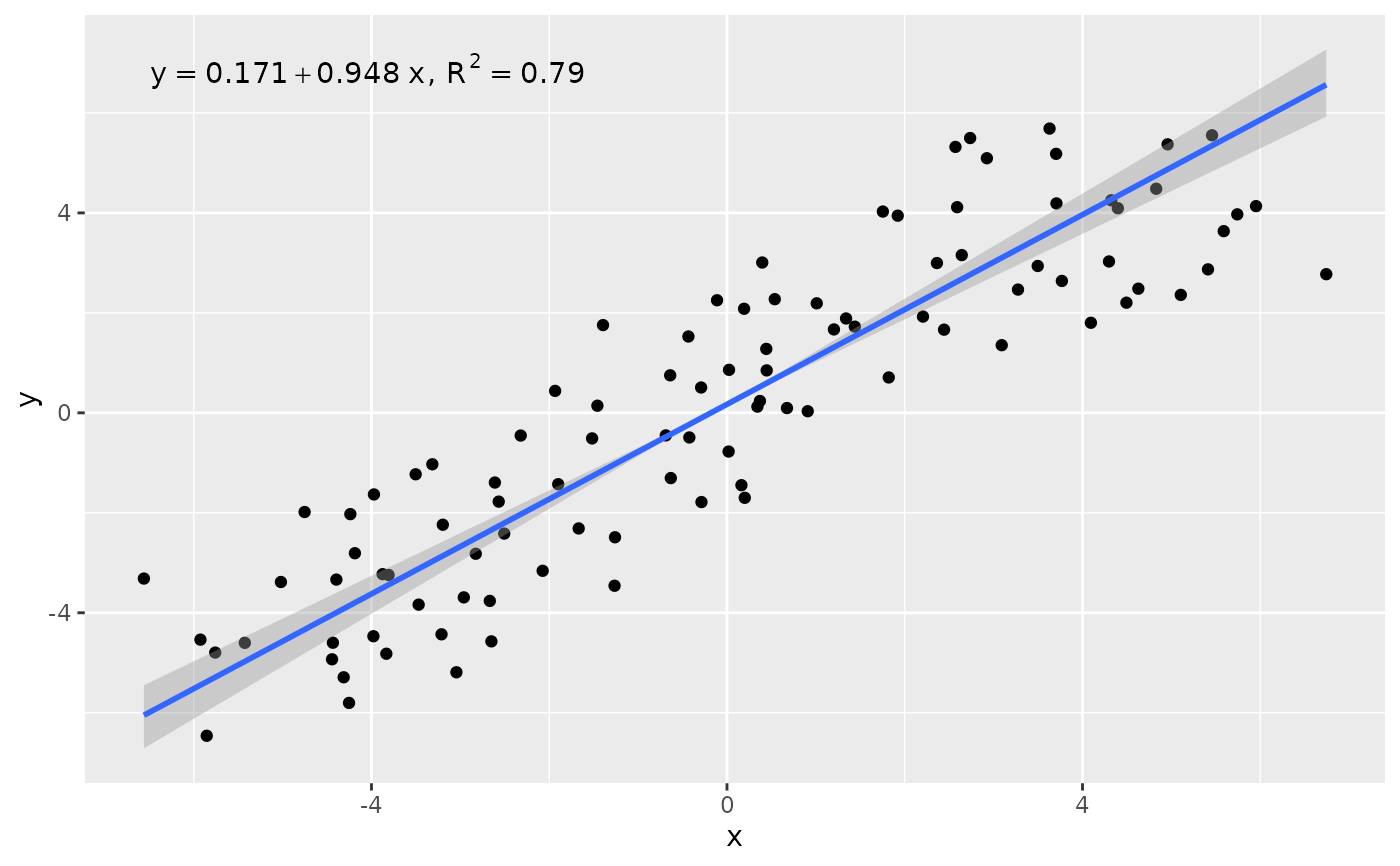 #> 1 NA NA italic(R)^2~`=`~"0.79" italic(y)~`=`~0.171 + 0.948*~italic(x)