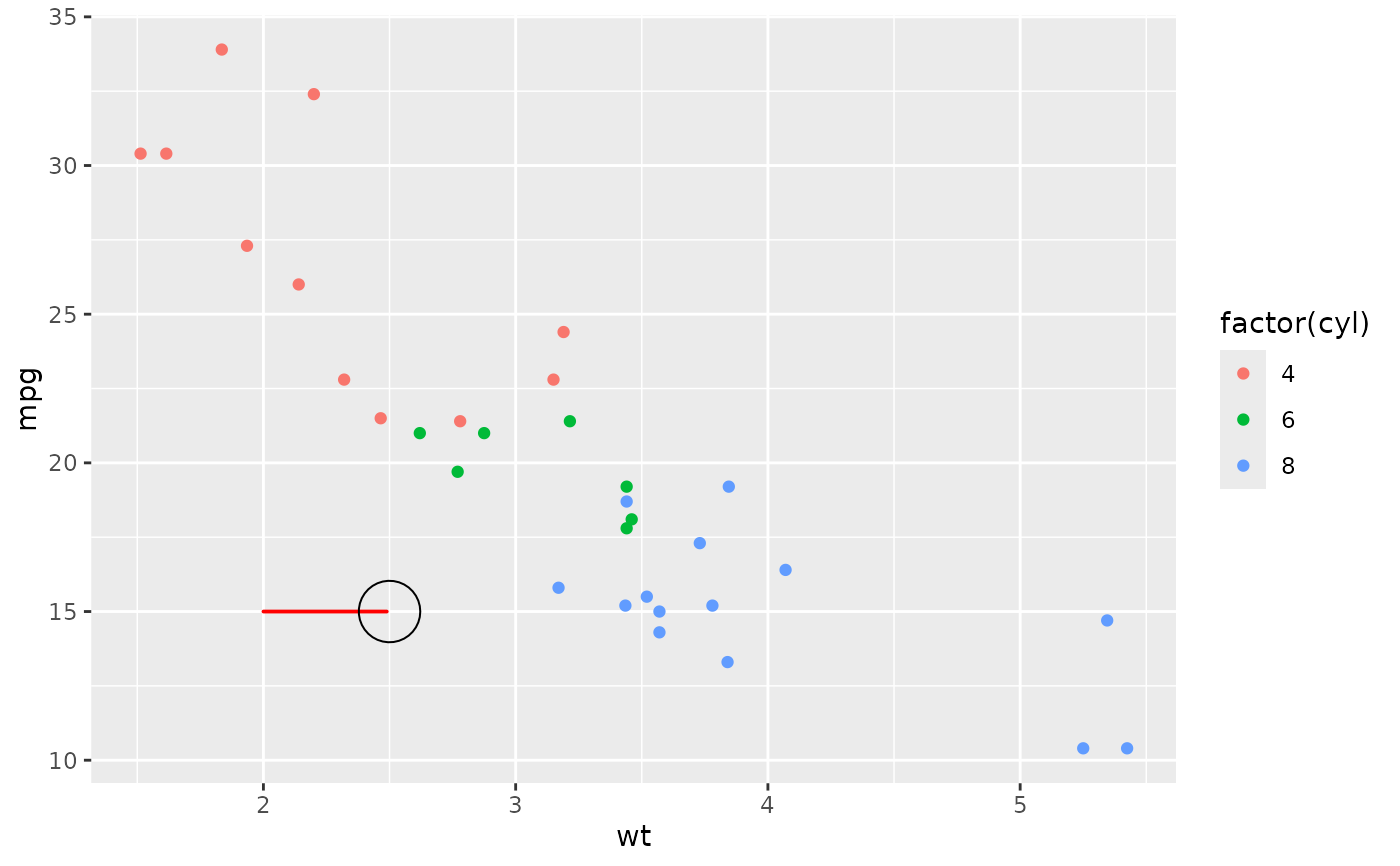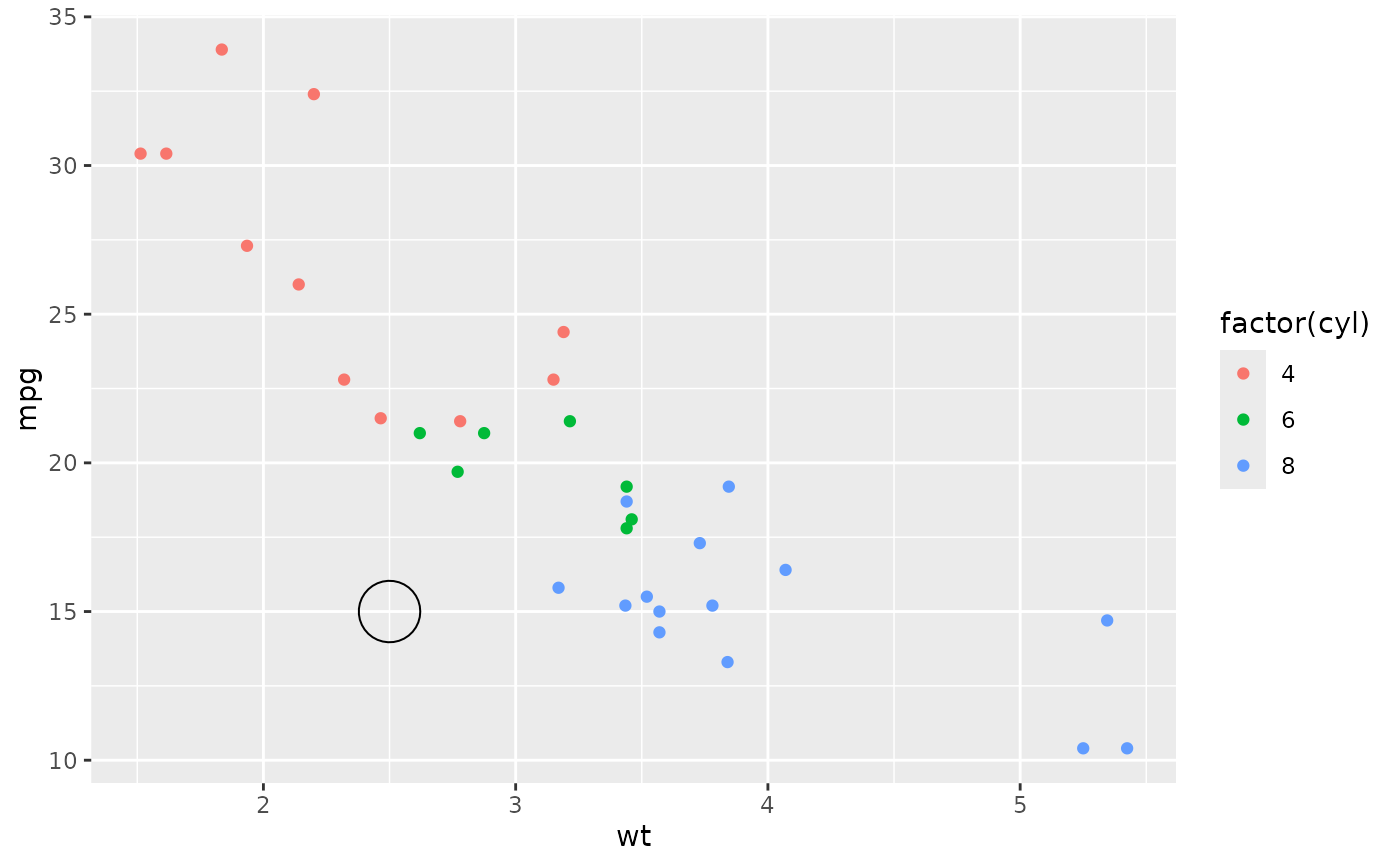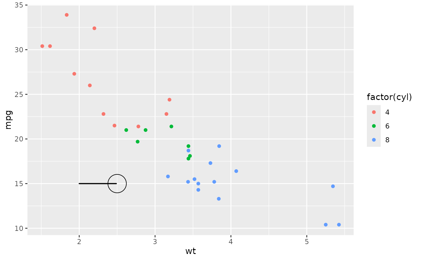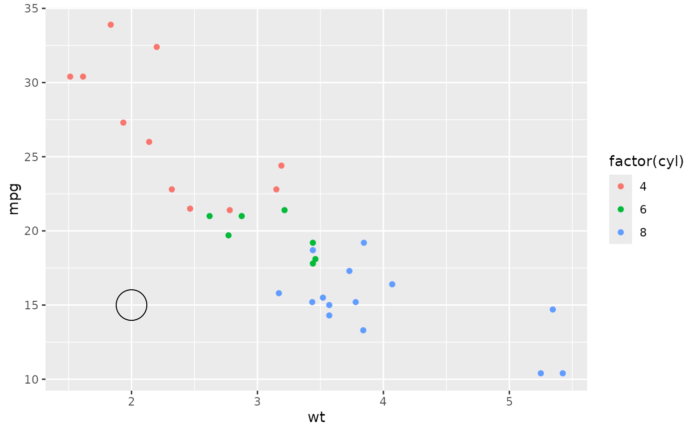 df <- tibble(x = 2, y = 15, grob = list(grid::circleGrob(r = 0.2)))