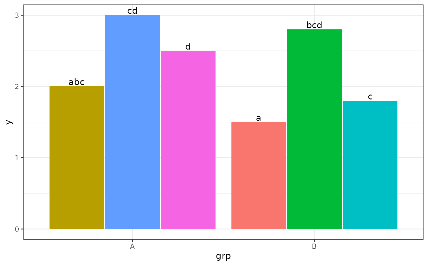 ggplot(df, aes(grp, y, label = label, fill = label)) +