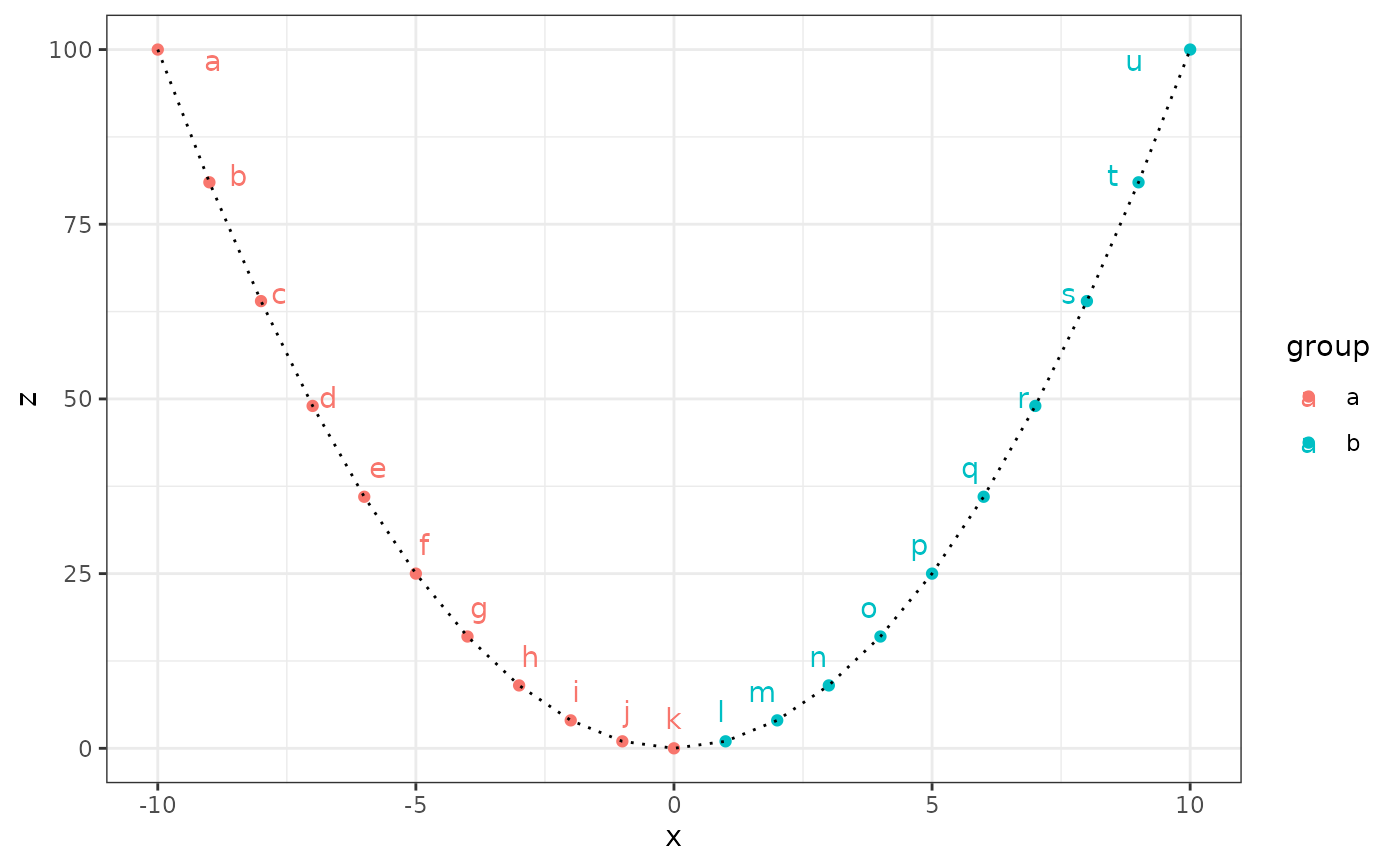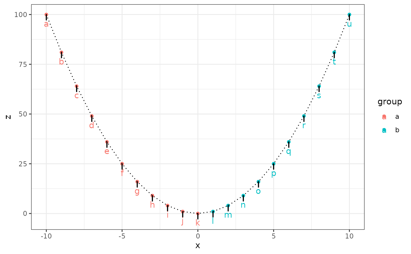 ggplot(df, aes(x, z, color = group)) +