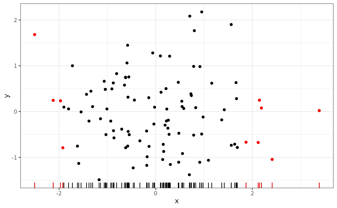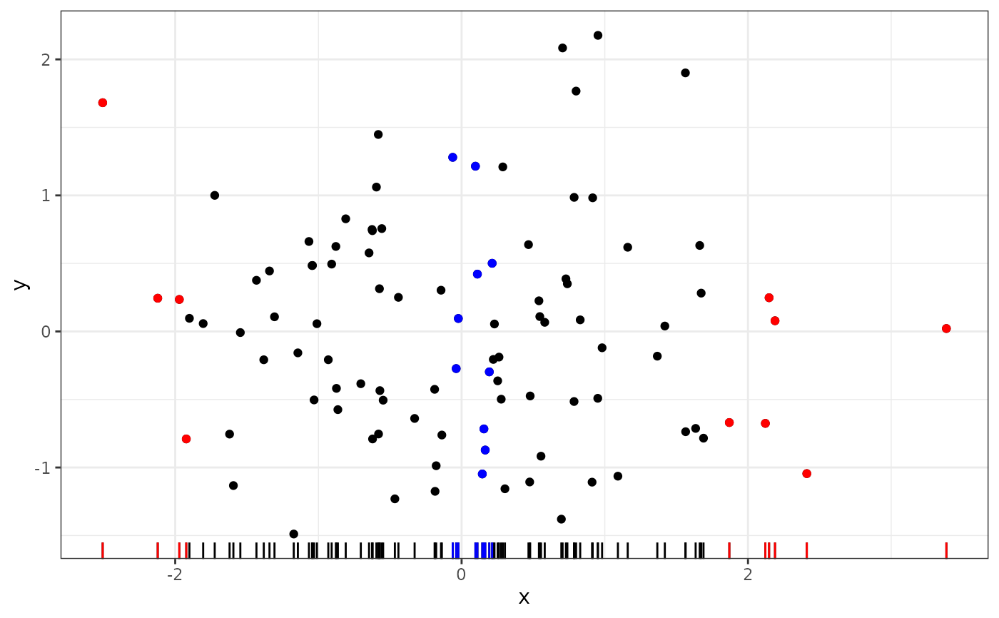 default is to select observations in sparse regions of the plot, but the