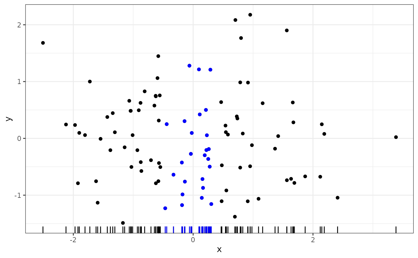stat_dens1d_filter(geom = "rug", colour = "blue",