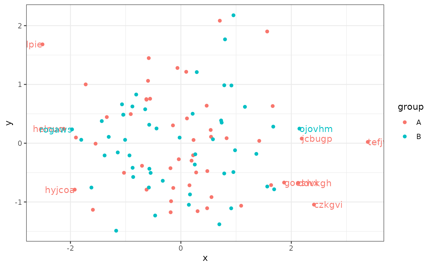 ggplot(data = d, aes(x, y, label = lab, colour = group)) +