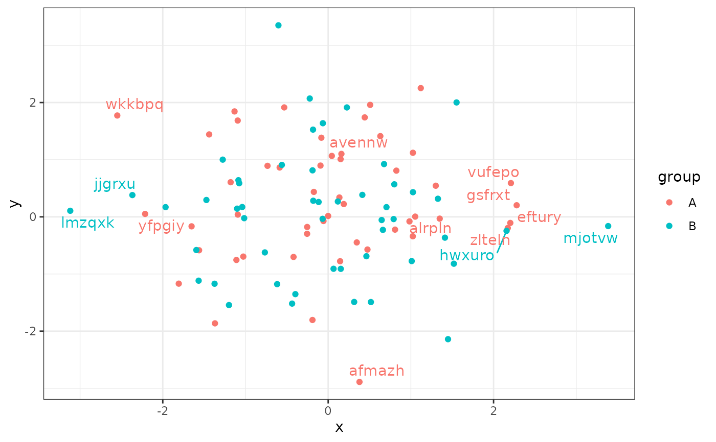 ggplot(data = d, aes(x, y, label = lab, colour = group)) +