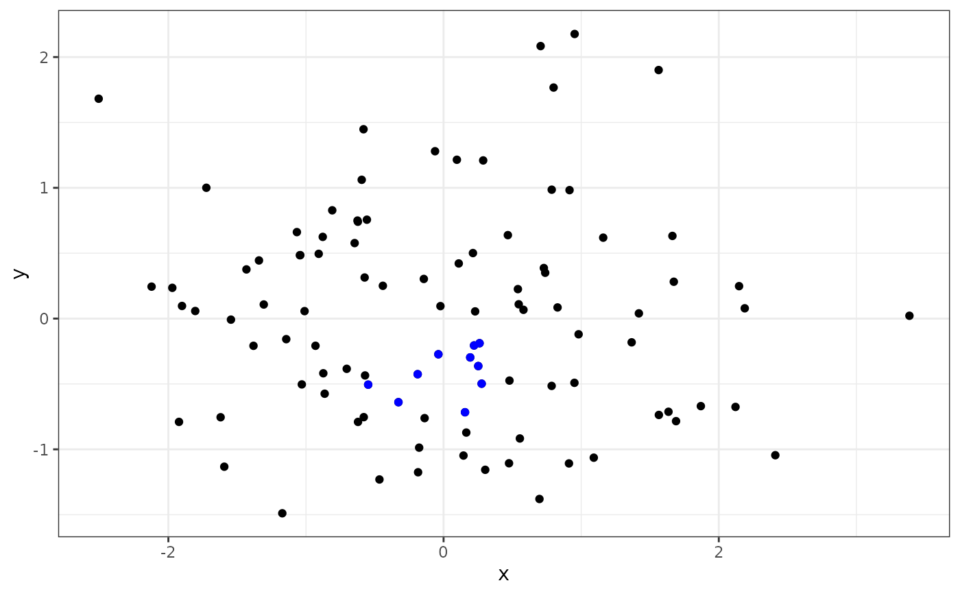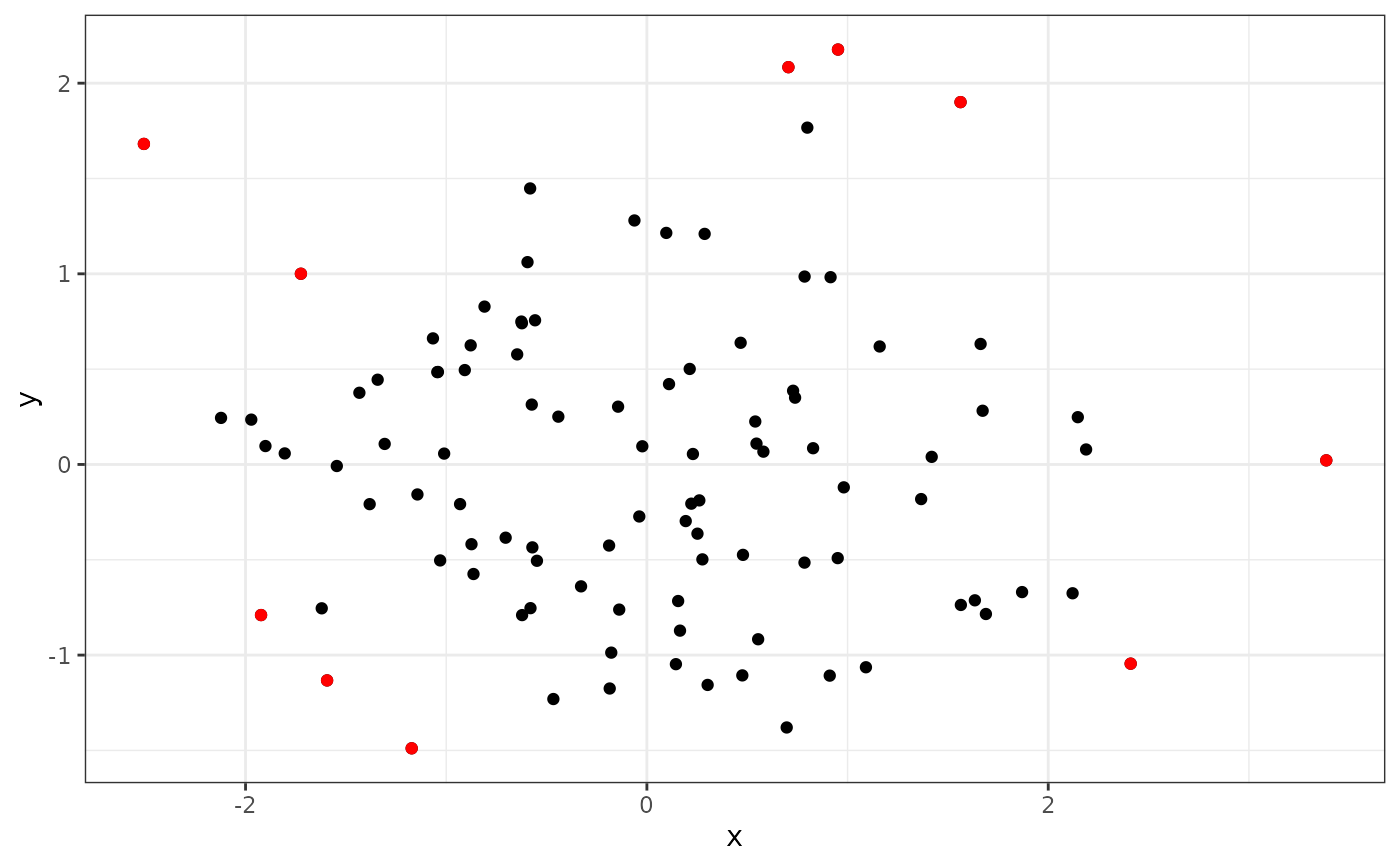 # filter (and here highlight) 1/10 observations in sparsest regions