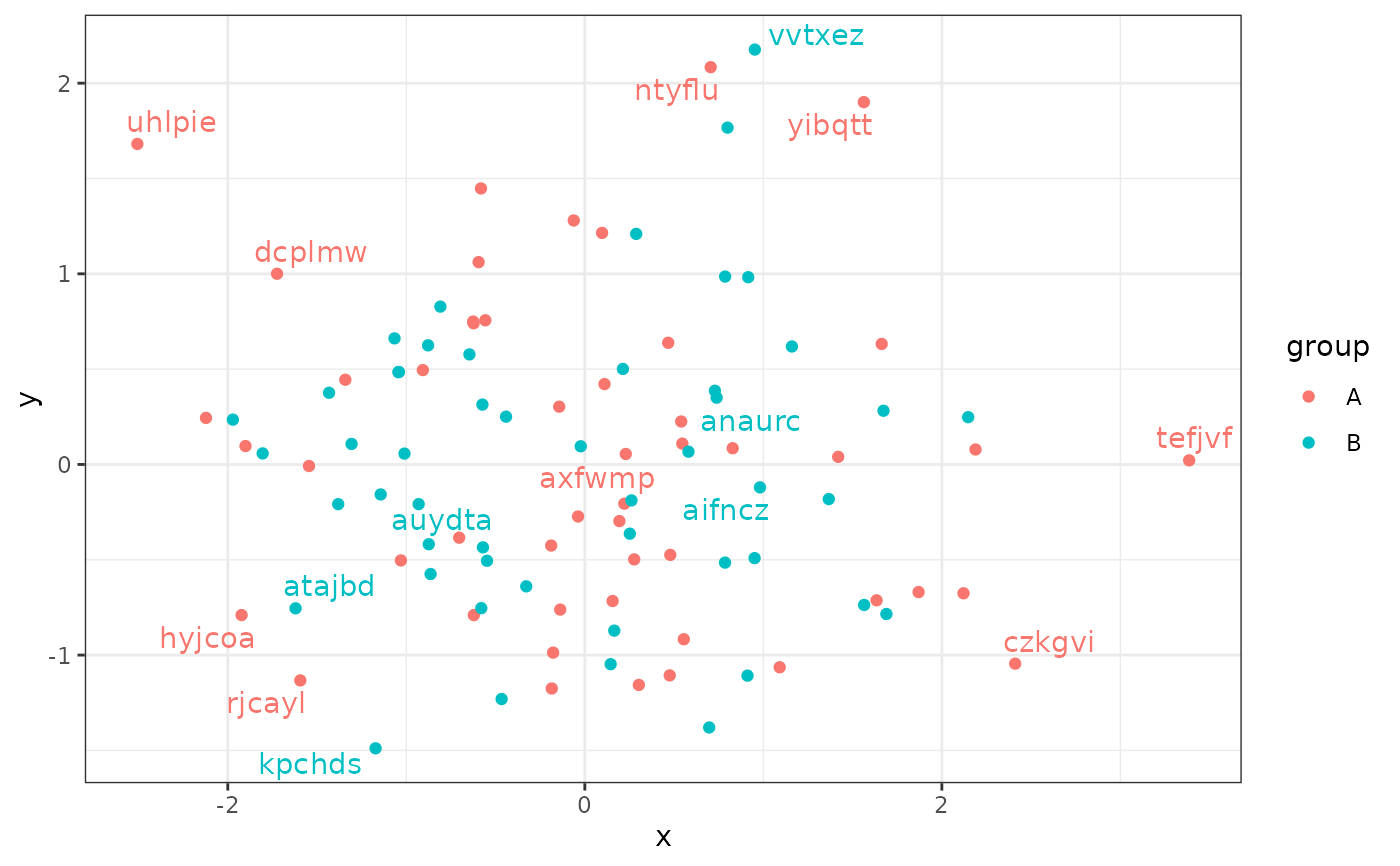 ggplot(data = d, aes(x, y, label = lab, colour = group)) +