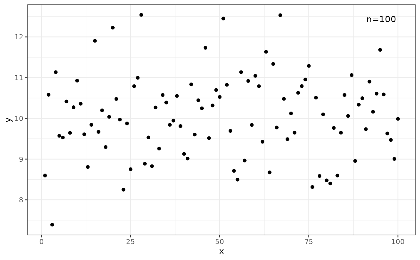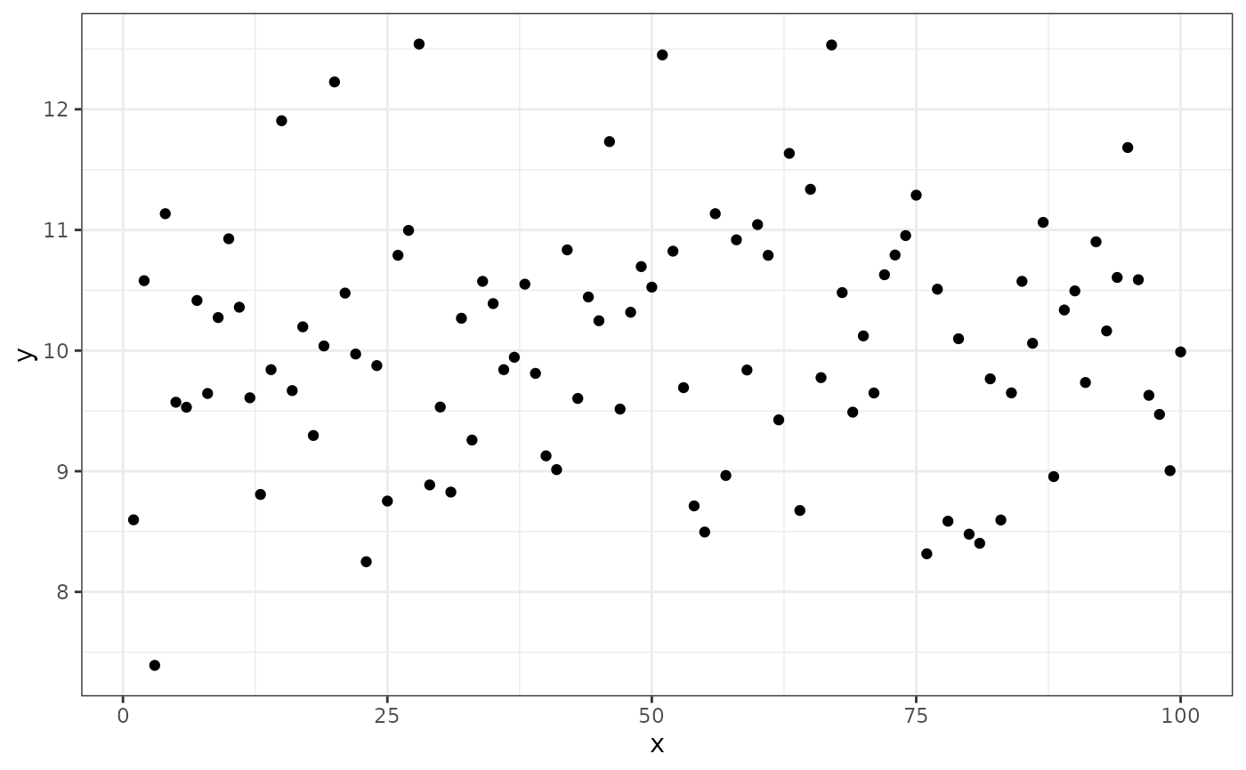 y <- rnorm(length(x), mean = 10)