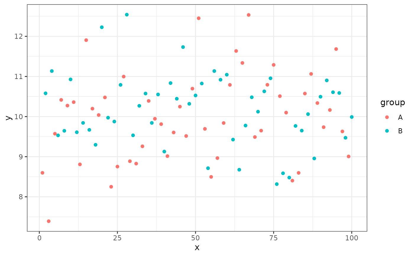 group <- factor(rep(c("A", "B"), times = 50))