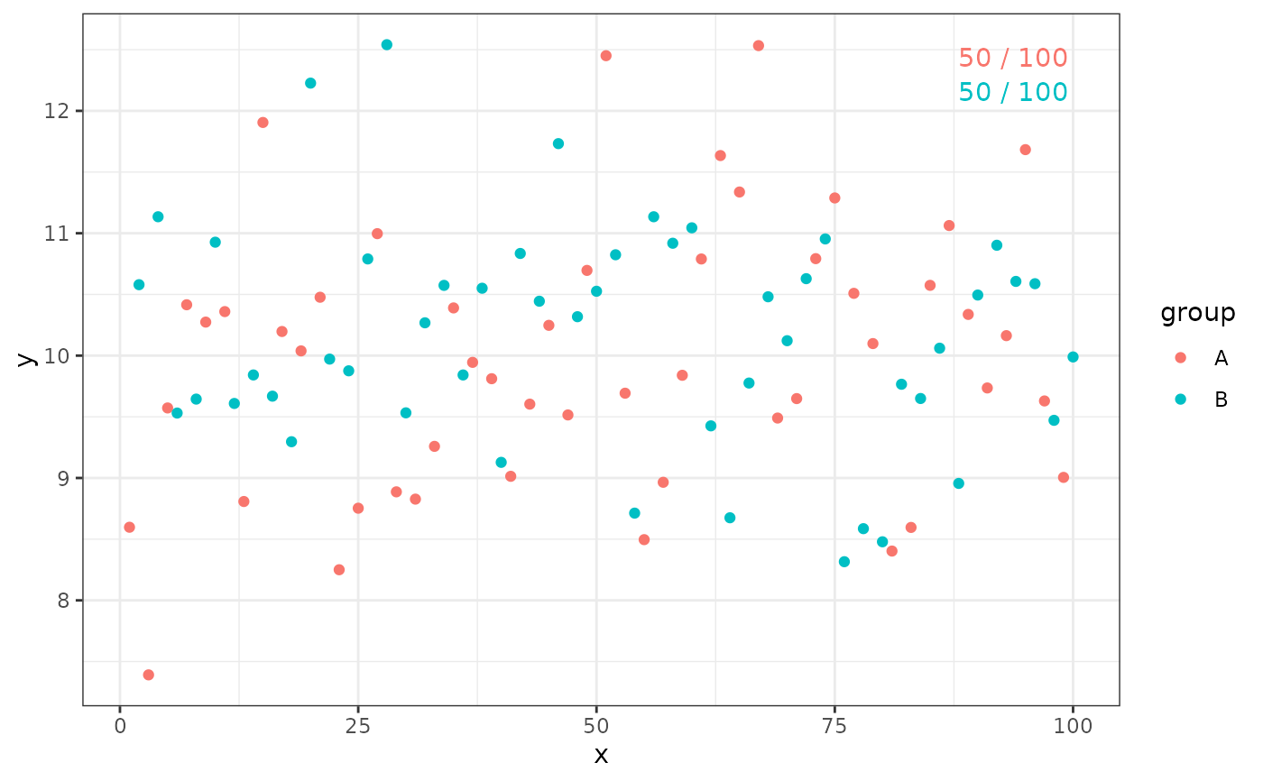 #> 1 #F8766D NA NA n=50 100 12.54082 1 1 50 100 n=50