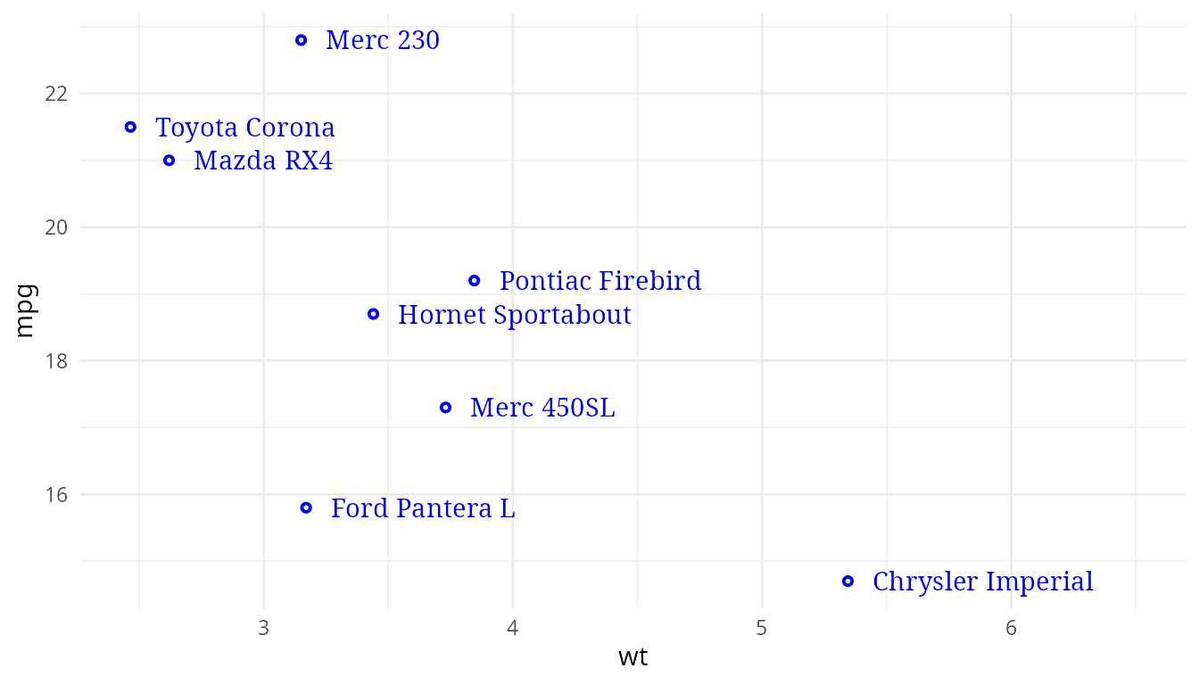 aes(x = wt, y = mpg, label = name,