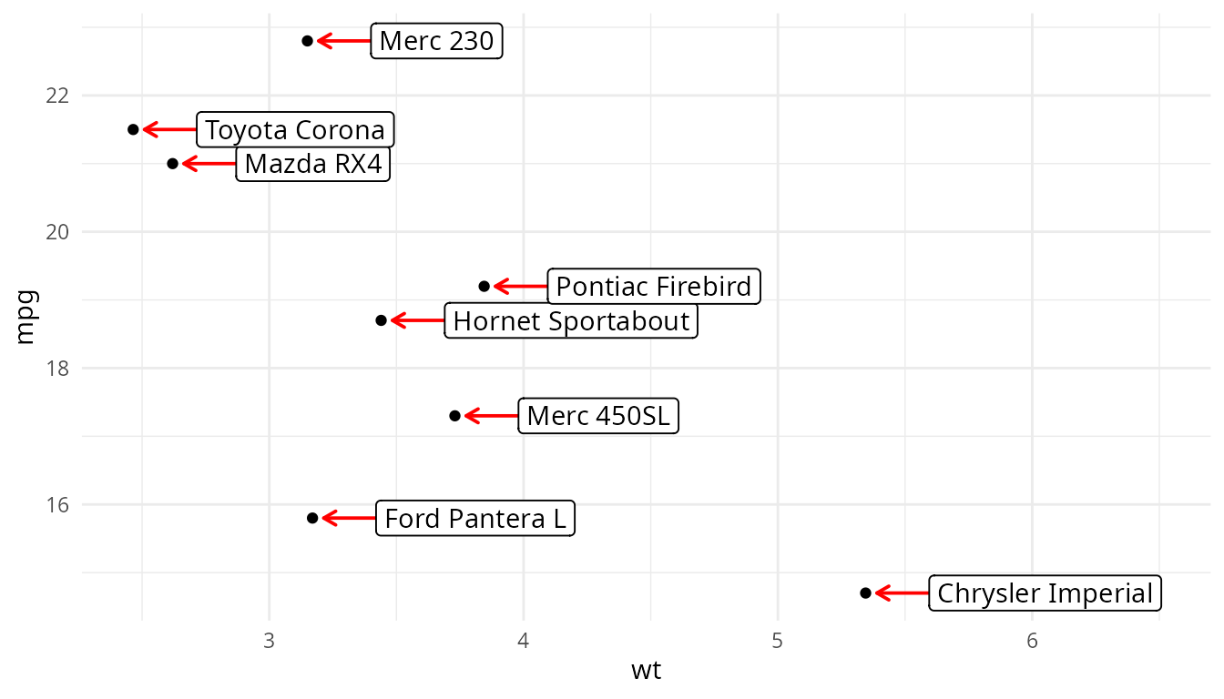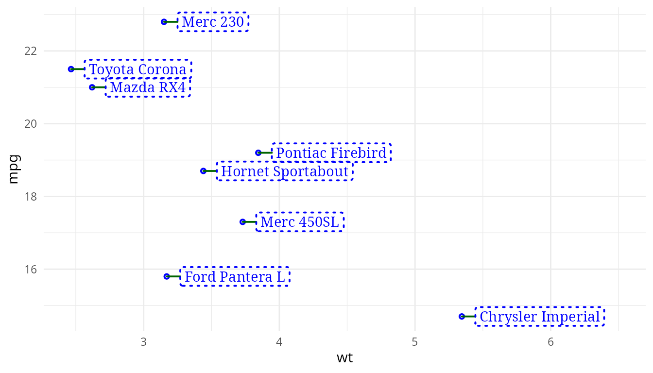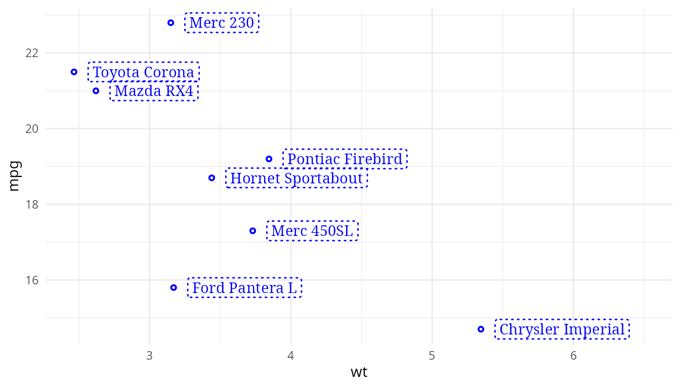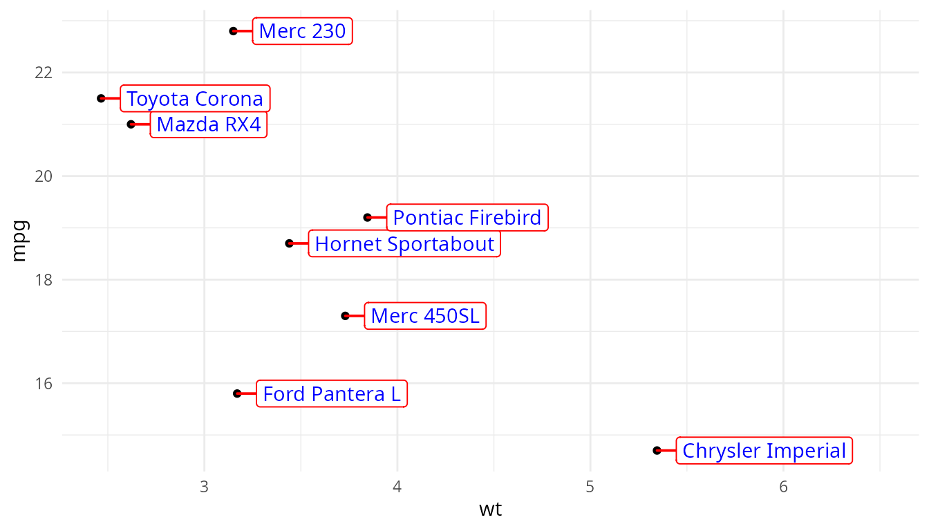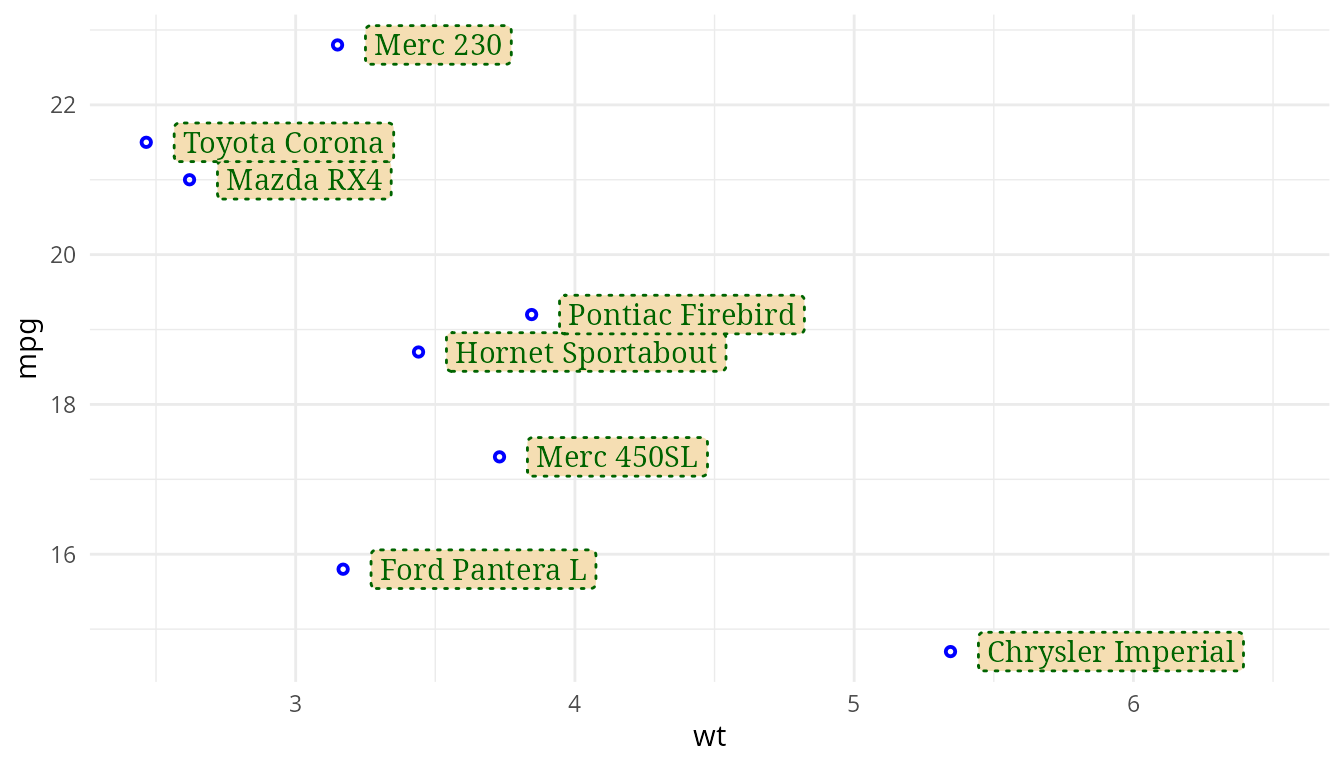 For the examples below geom_label() from ‘ggplot2’ and