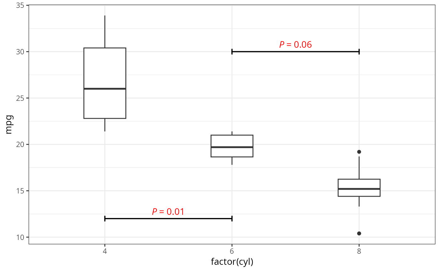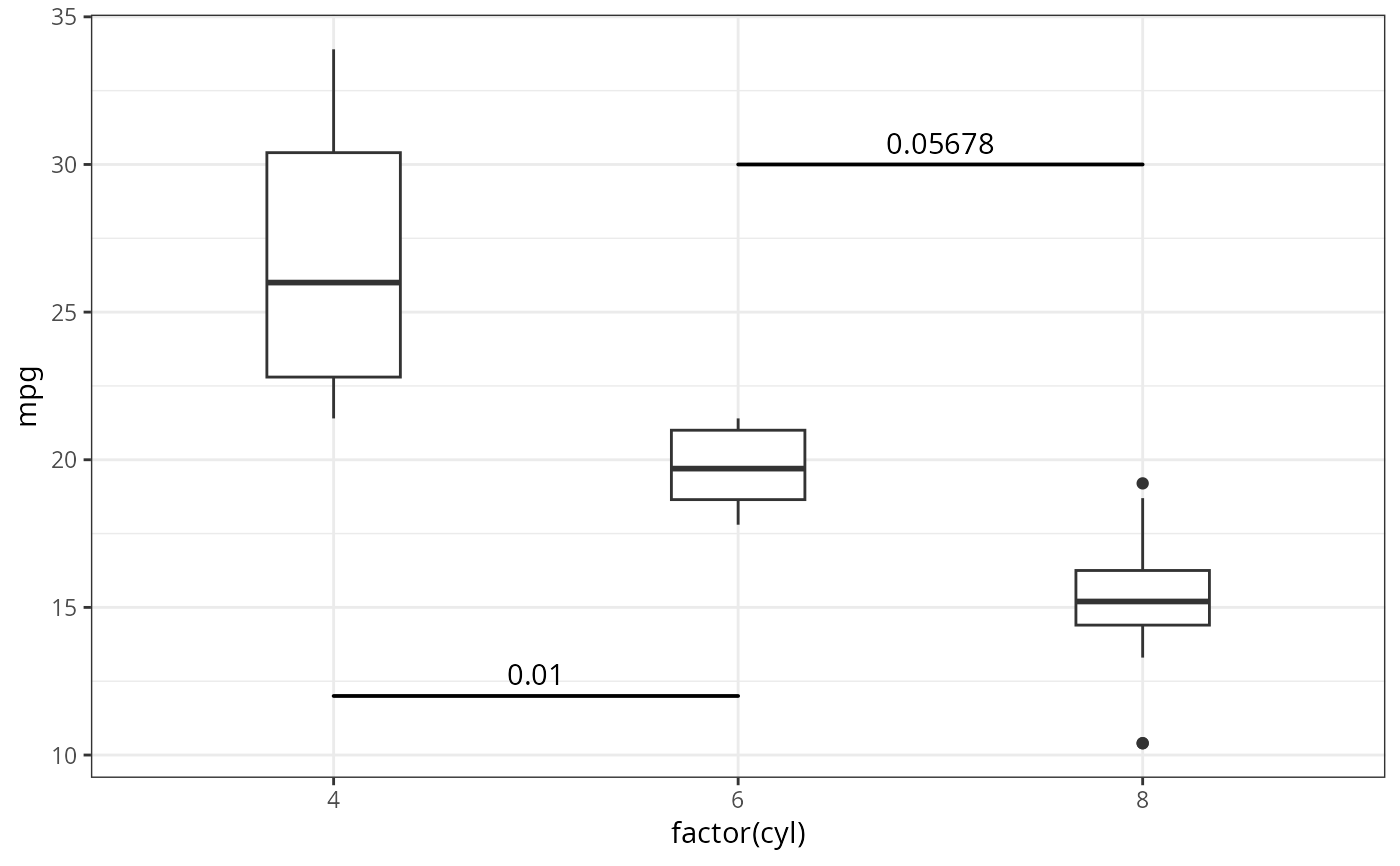 factor mapped to the x aesthetic when used to report significance or