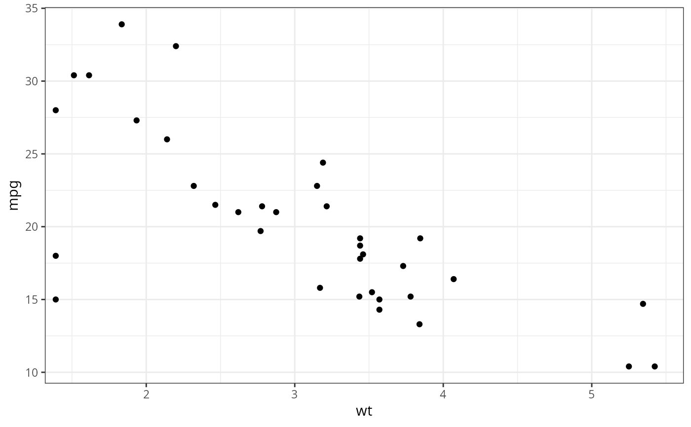 p <- ggplot(mtcars, aes(wt, mpg)) +
