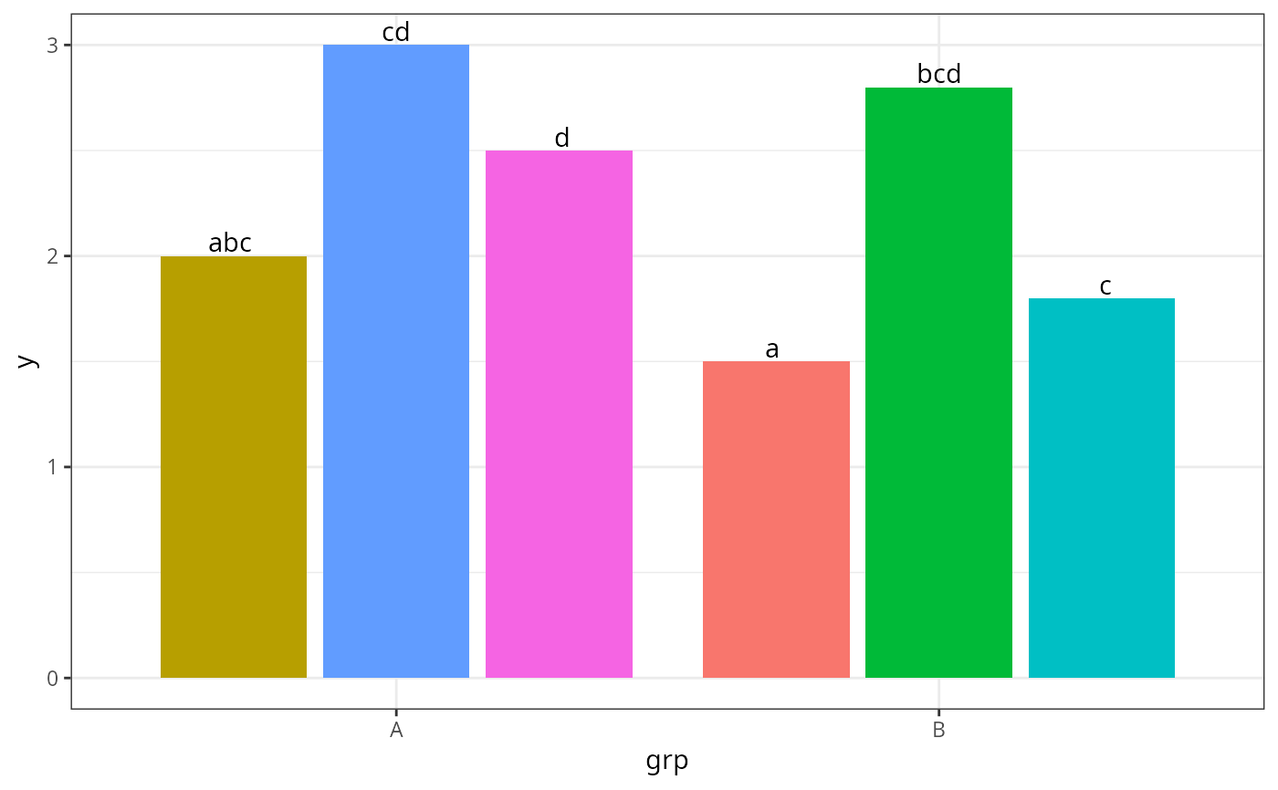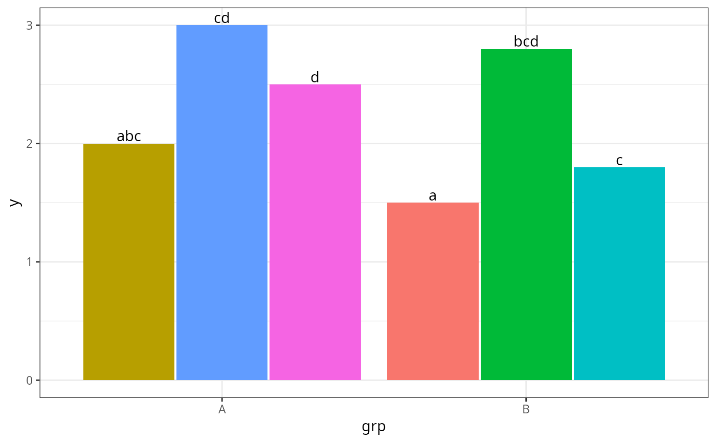 ggplot(df, aes(grp, y, label = label, fill = label)) +