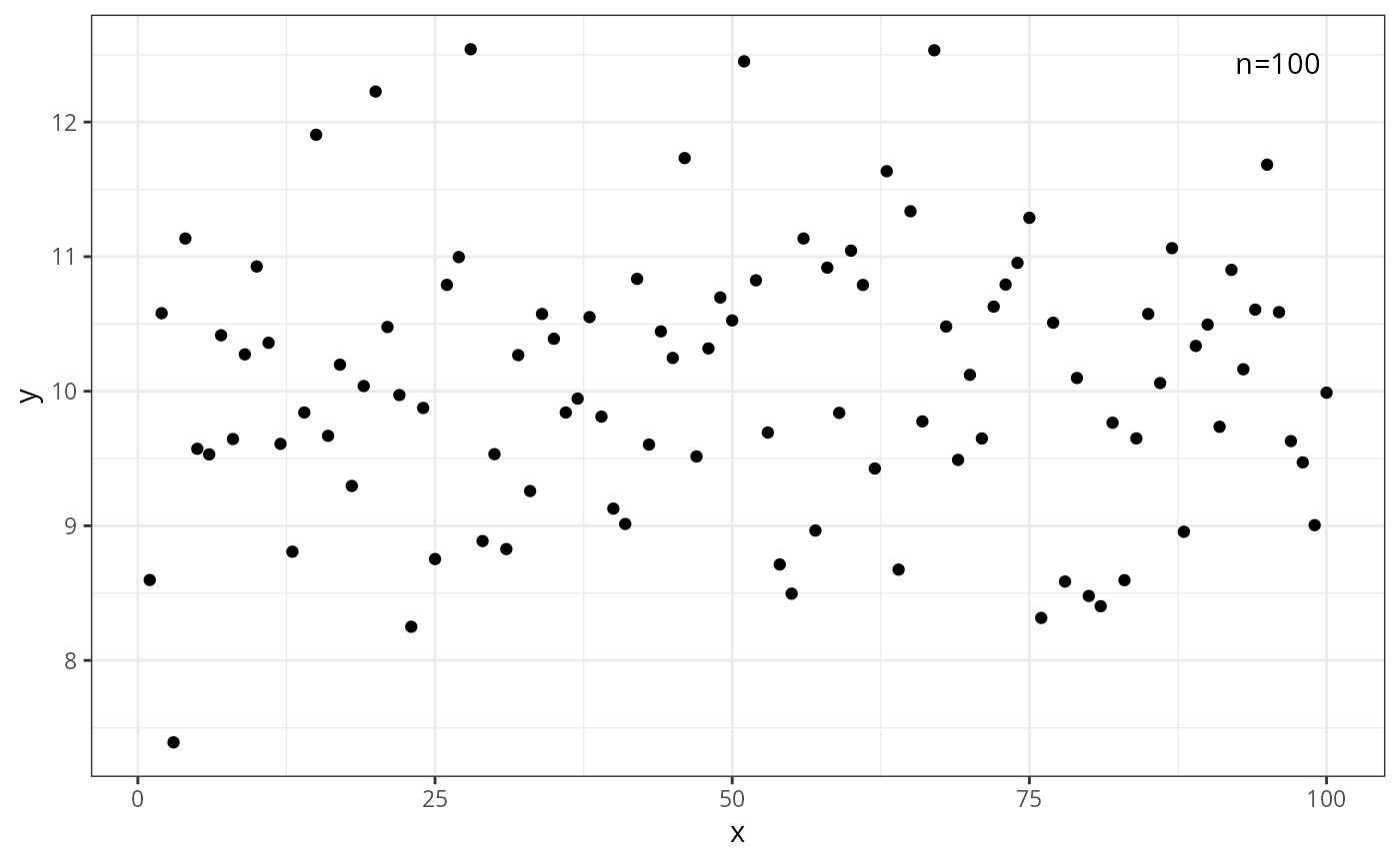 y <- rnorm(length(x), mean = 10)