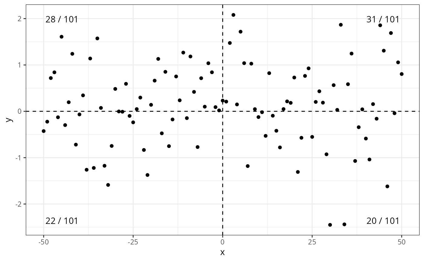 stat_quadrant_counts(geom = "text") # use geom_text()