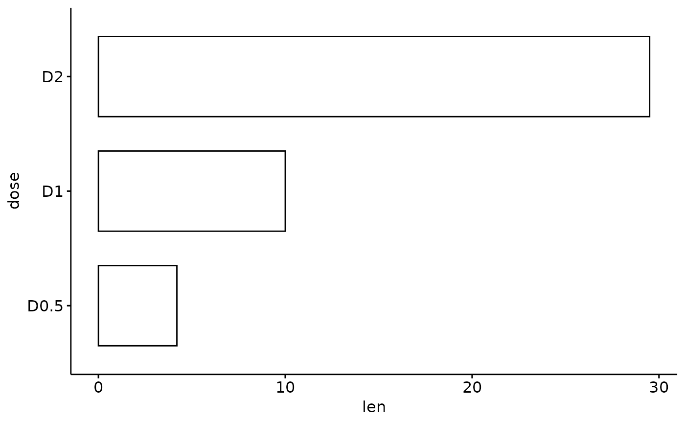 ggbarplot(df, "dose", "len", orientation = "horiz")