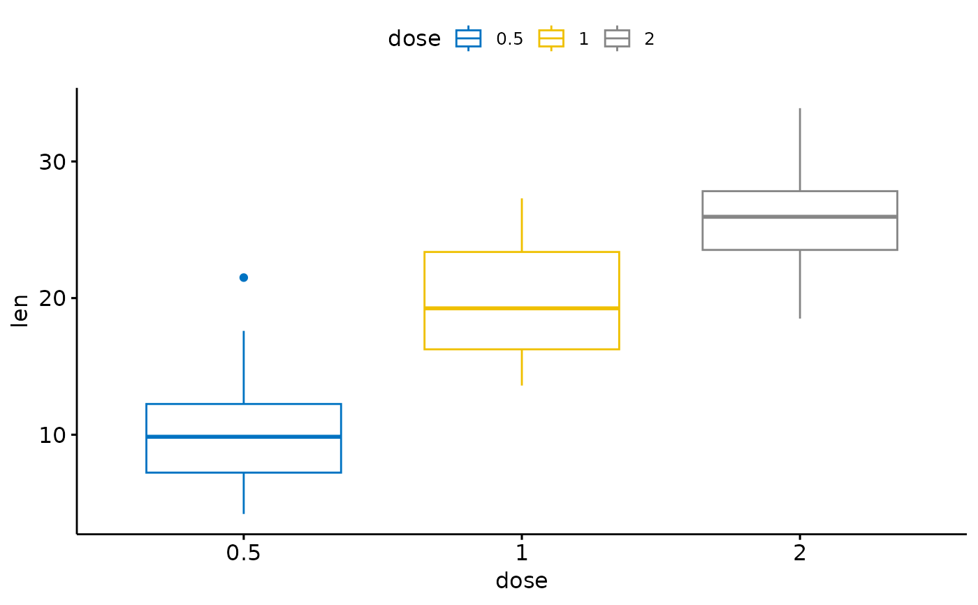 p <- ggboxplot(df, x = "dose", y = "len",
