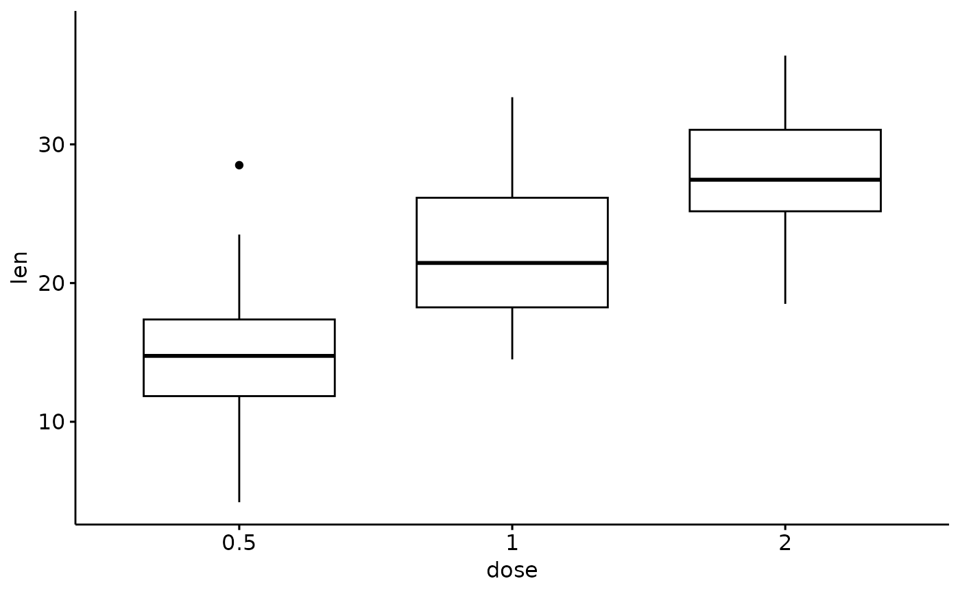 bxp <- ggboxplot(df, x = "dose", y = "len") +