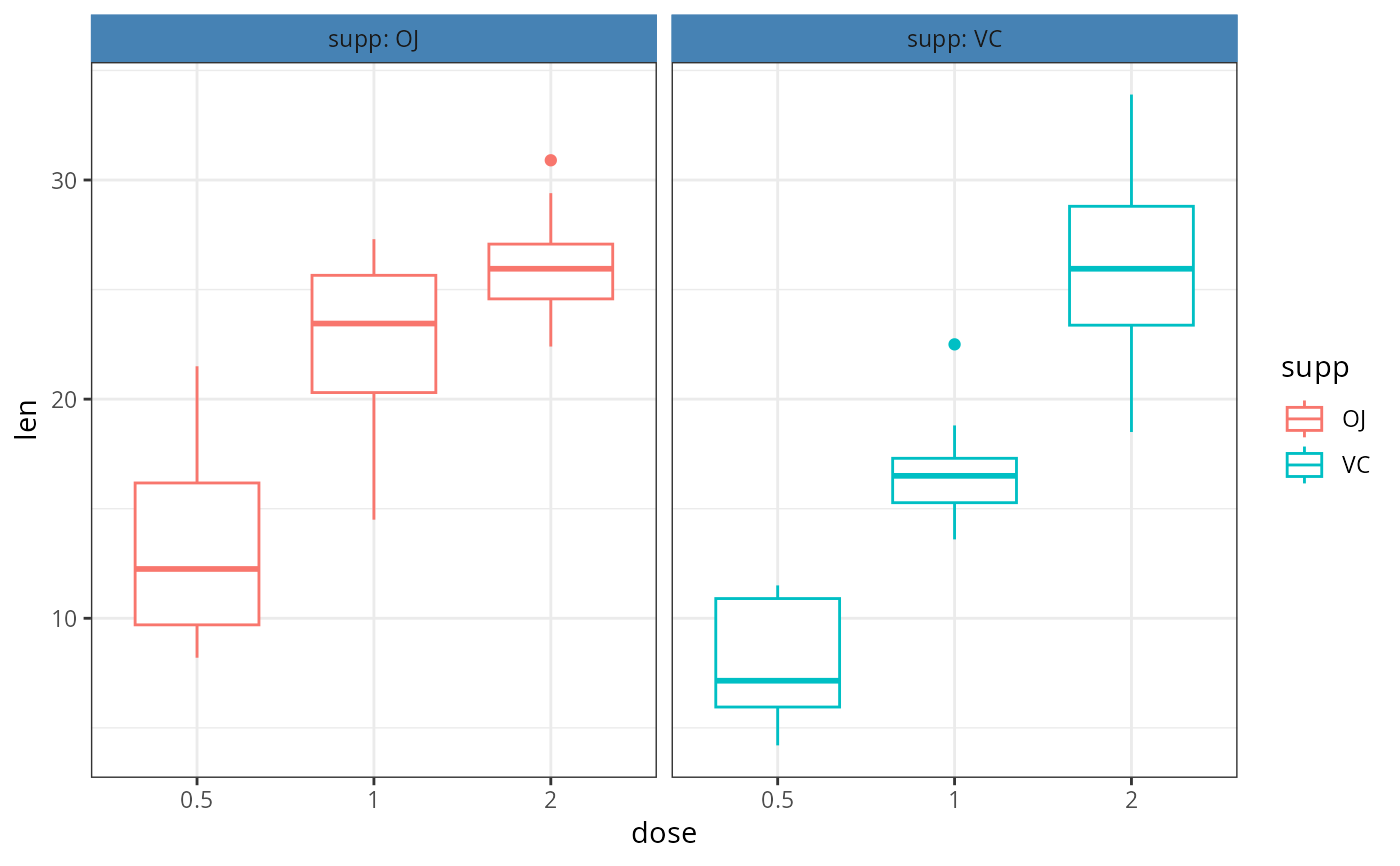 a list of one or two character vectors to modify facet panel labels. For example, panel.labs = list(sex = c("Male", "Female")) specifies the labels for the "sex" variable. For two grouping variables, you can use for example panel.labs = list(sex = c("Male", "Female"), rx = c("Obs", "Lev", "Lev2") ).
