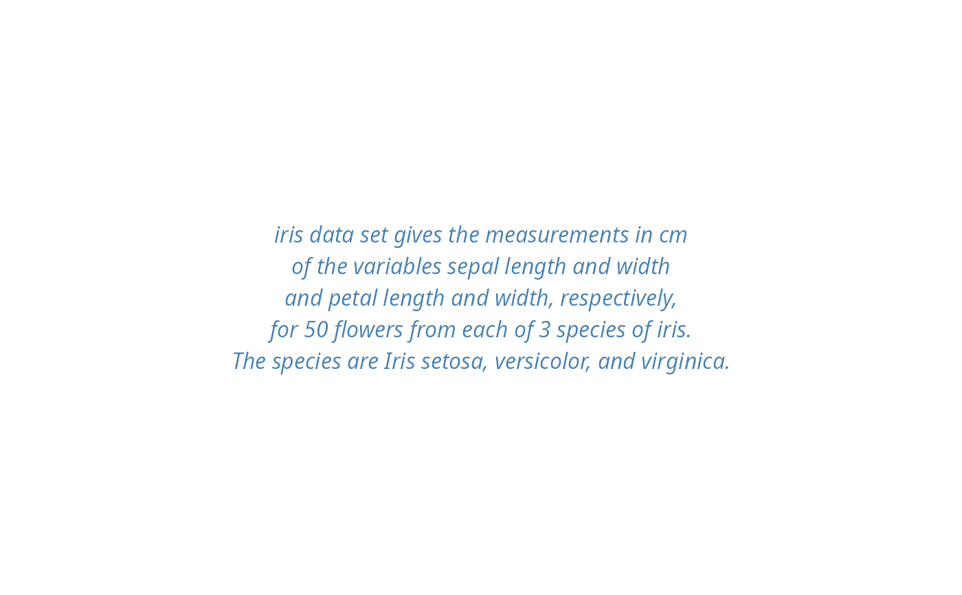 "The species are Iris setosa, versicolor, and virginica.", sep = "\n")