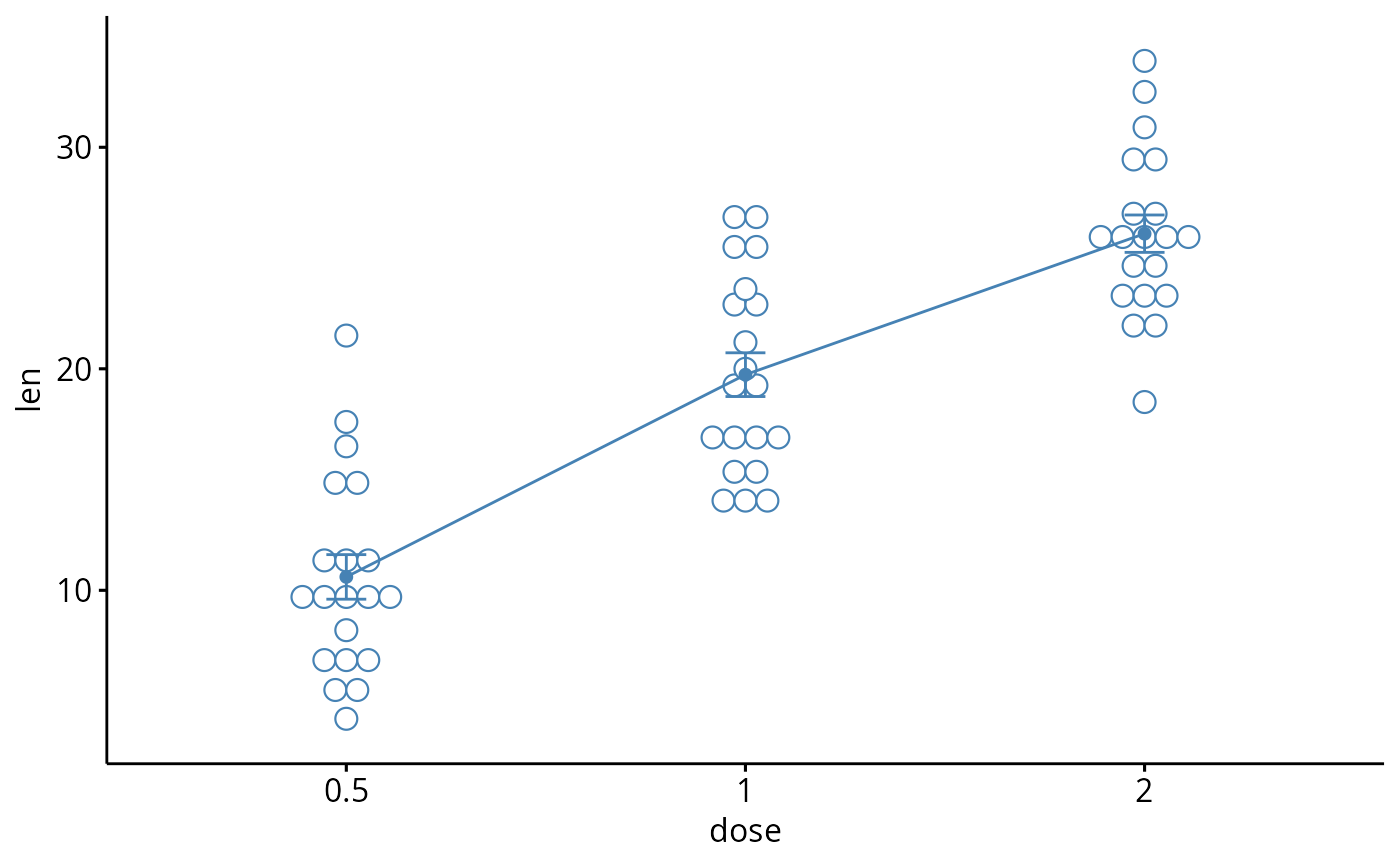add = c("mean_se", "dotplot"), color = "steelblue")