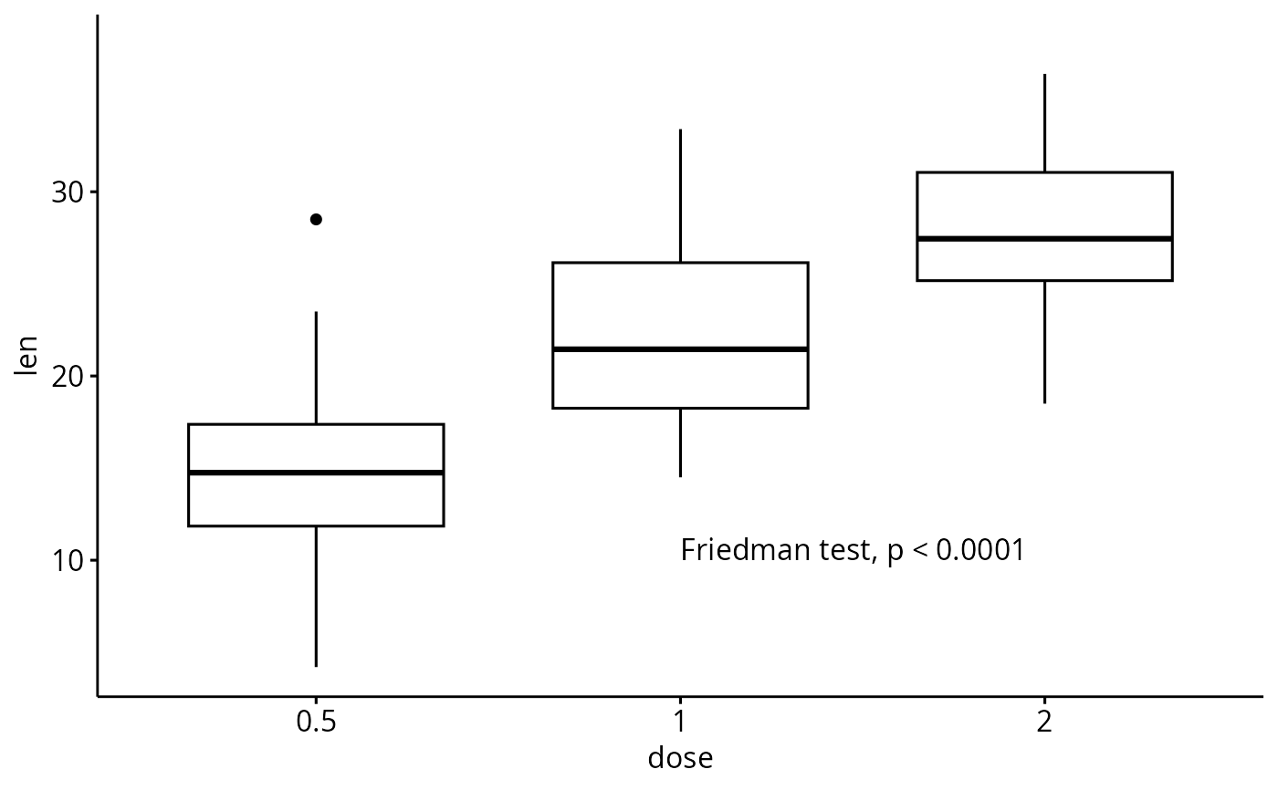 bxp + stat_friedman_test(aes(wid = id), label.x = "1", label.y = 10, hjust = 0)