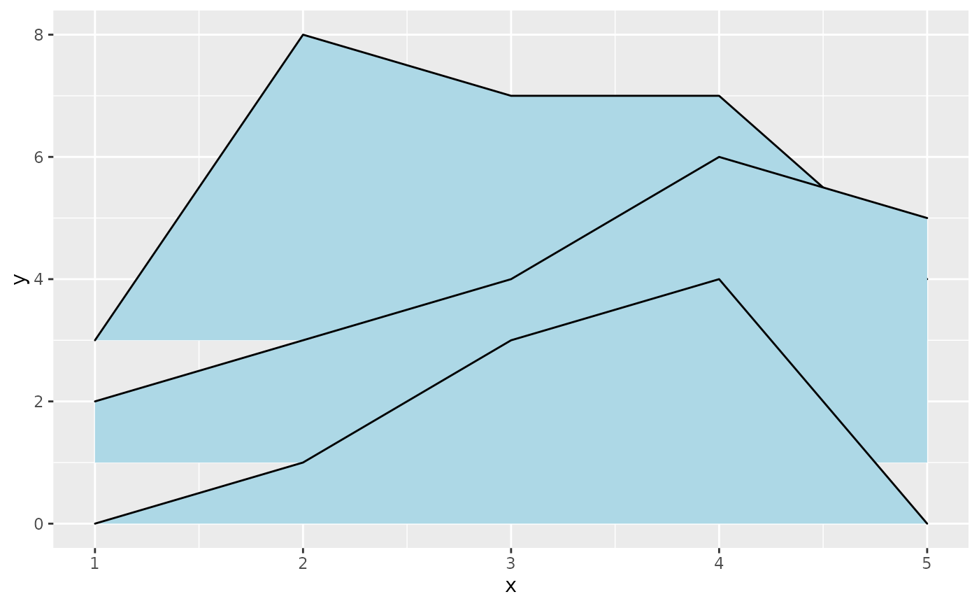 Plots the sum of the y and height aesthetics versus x, filling the area between y and y + height with a color.