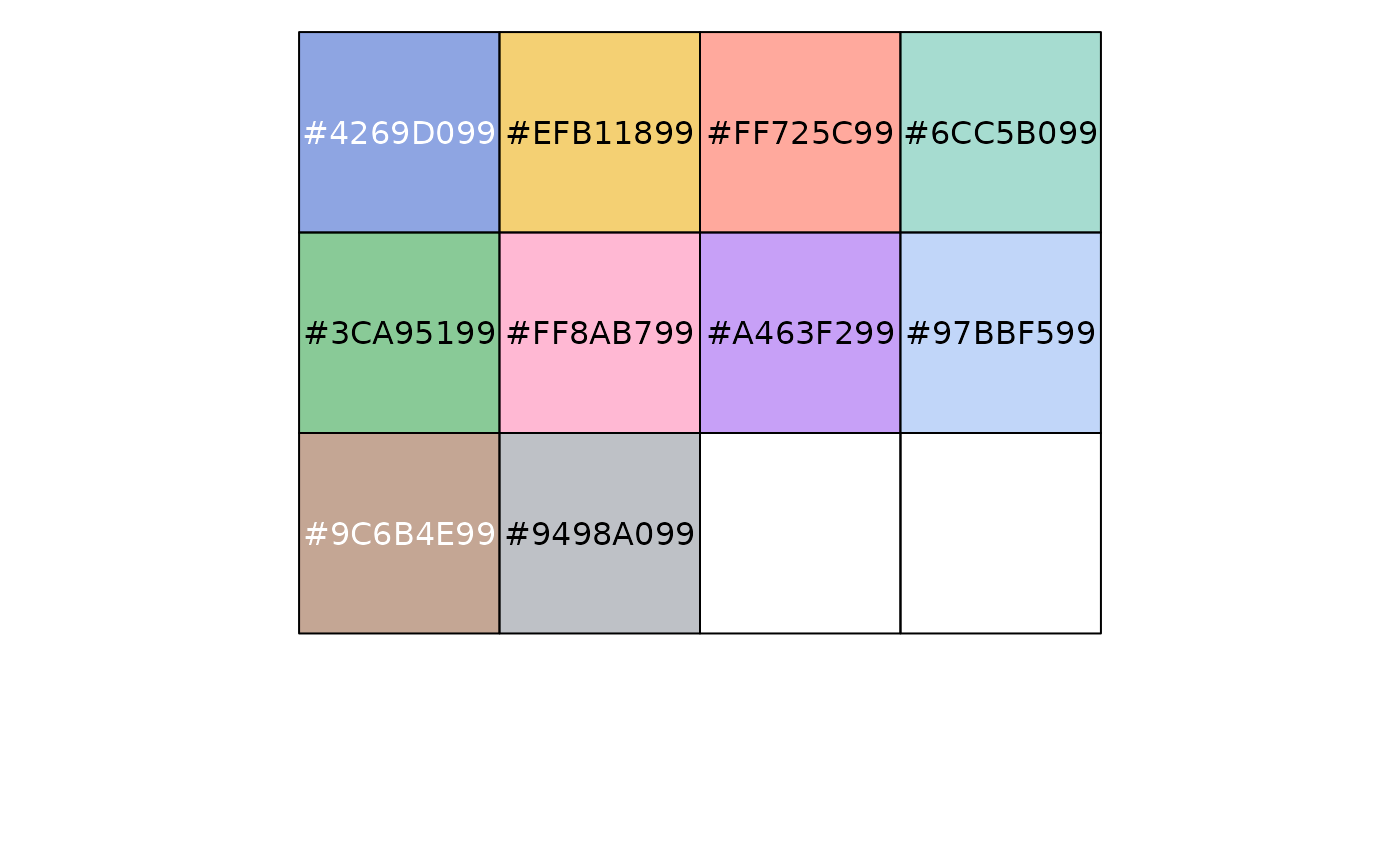 pal_observable(palette = c("observable10"), alpha = 1)Palette type.