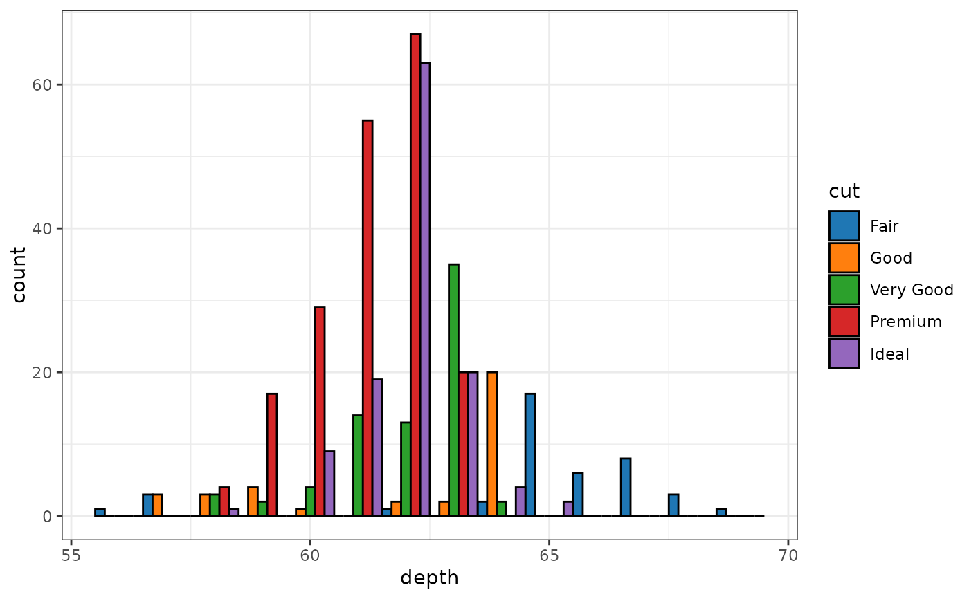 geom_histogram(colour = "black", binwidth = 1, position = "dodge") +