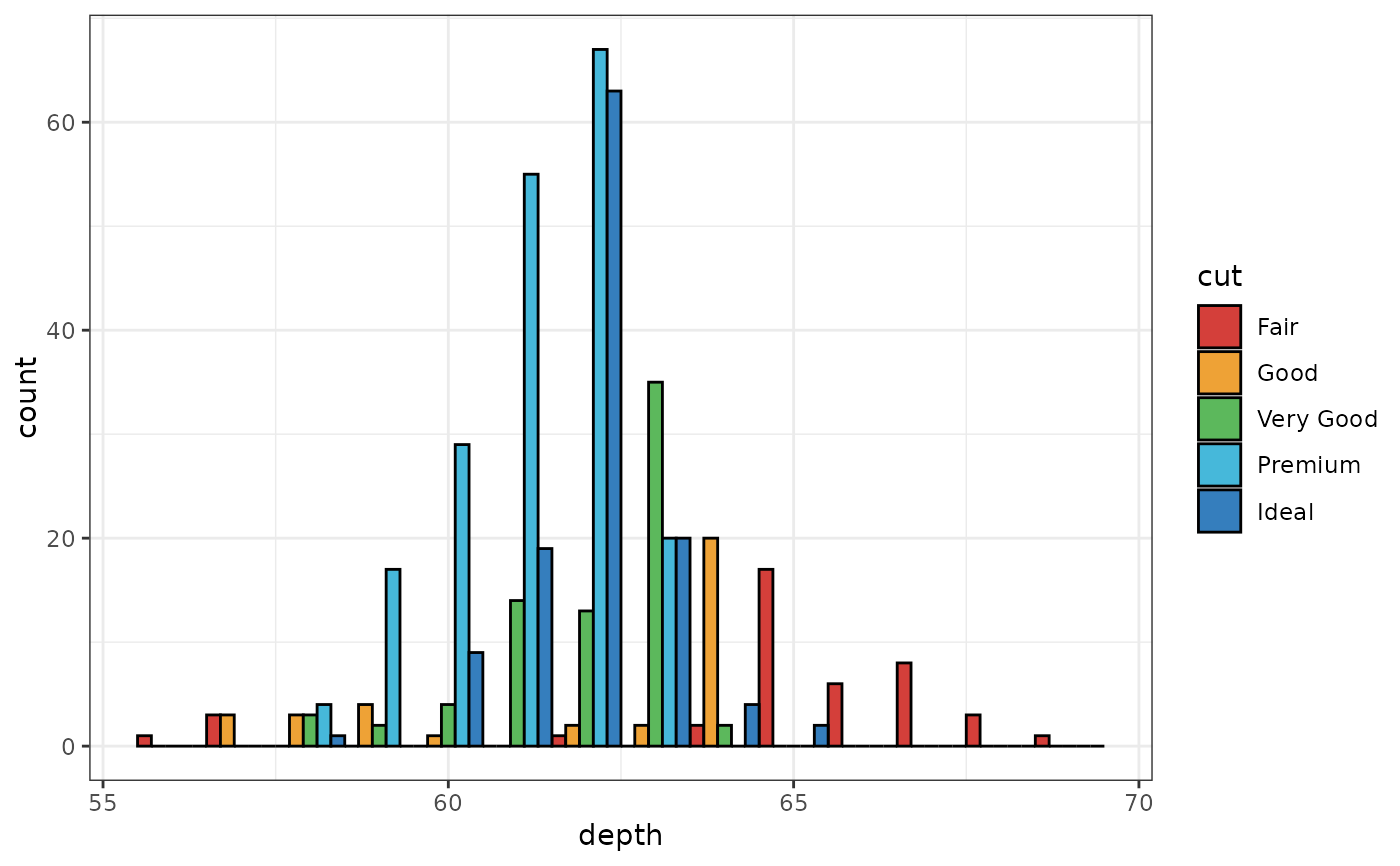 aes(x = depth, fill = cut)