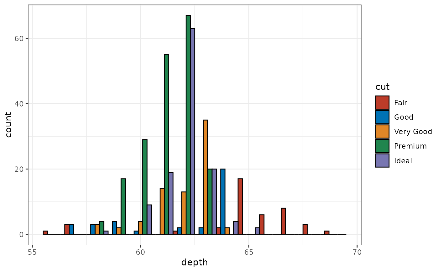 geom_histogram(colour = "black", binwidth = 1, position = "dodge") +