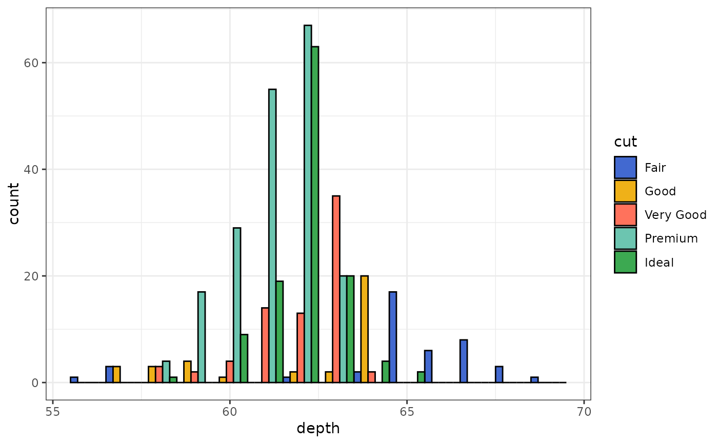 geom_histogram(colour = "black", binwidth = 1, position = "dodge") +