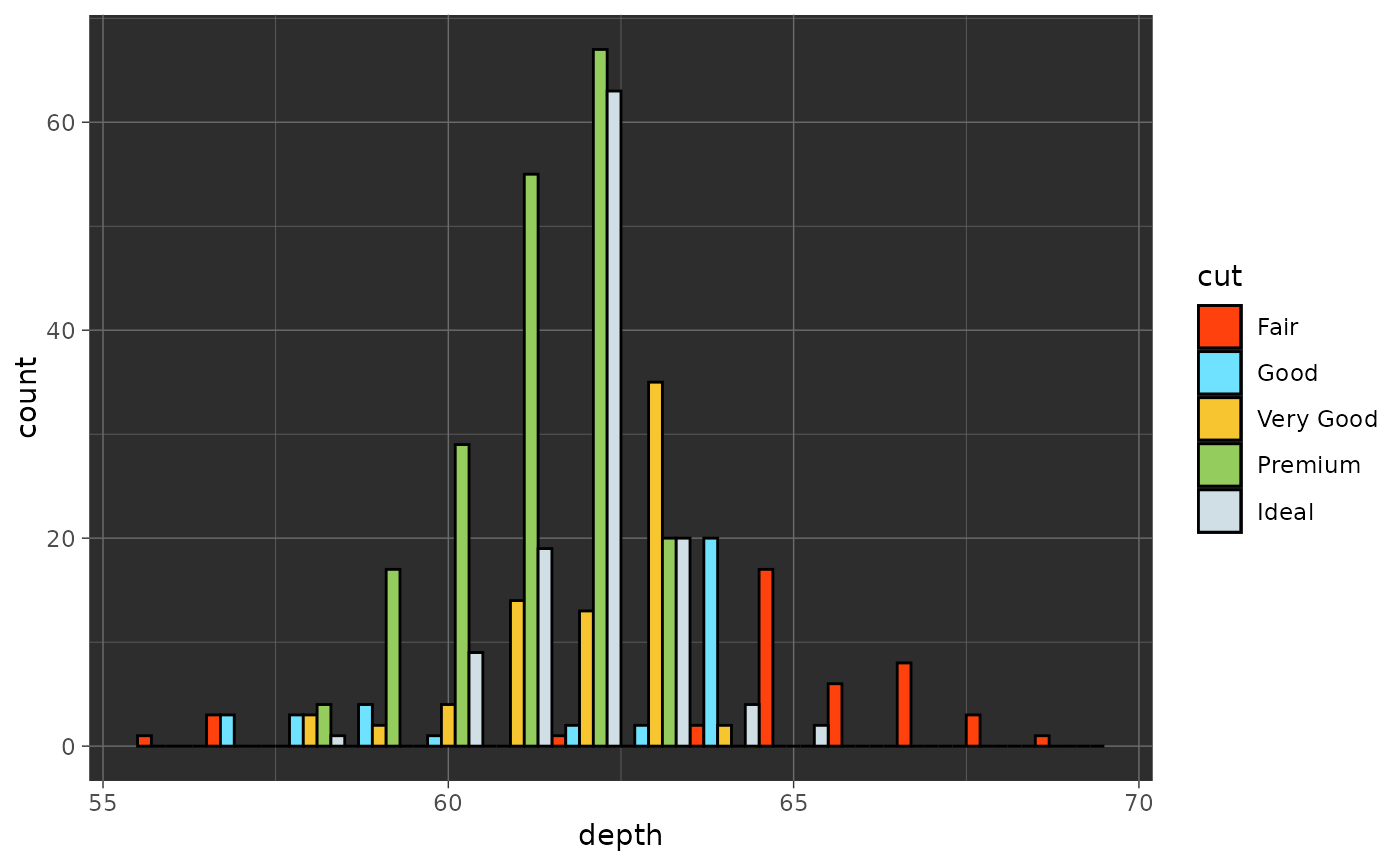 geom_histogram(colour = "black", binwidth = 1, position = "dodge") +
